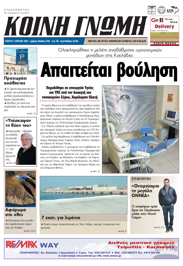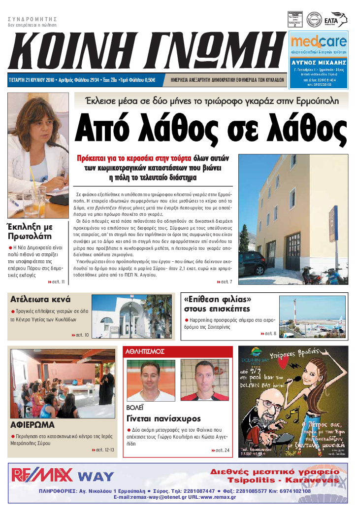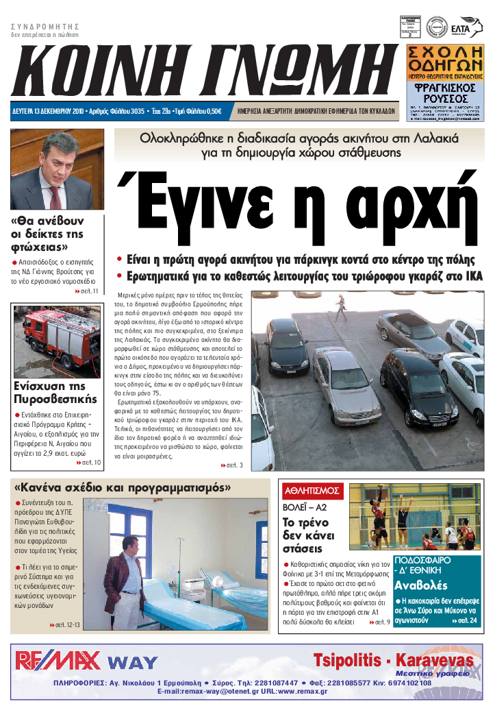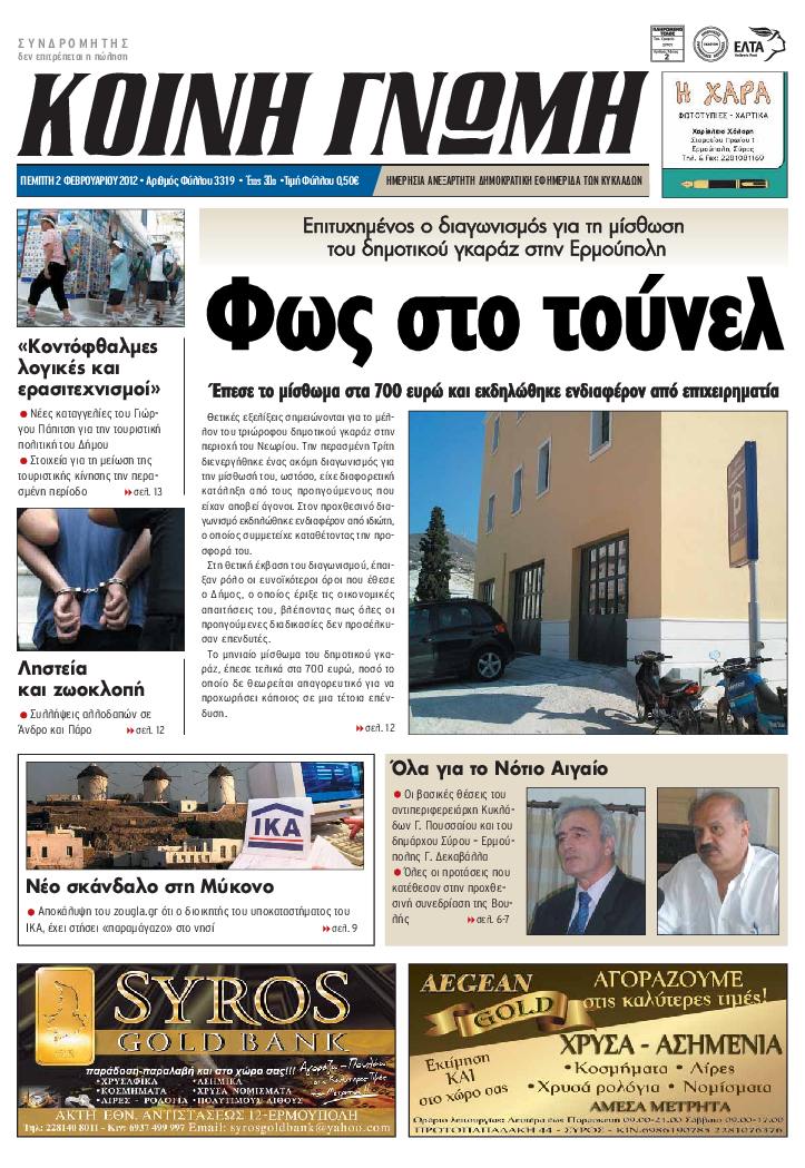 ΚΟΙΝΗ ΓΝΩΜΗ ΚΟΙΝΗ ΓΝΩΜΗ Ημερησια Εφημεριδα των Κυκλαδων