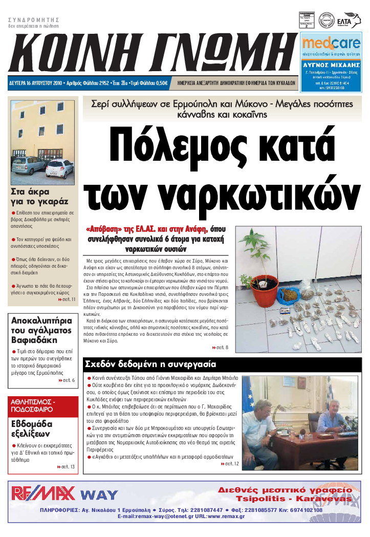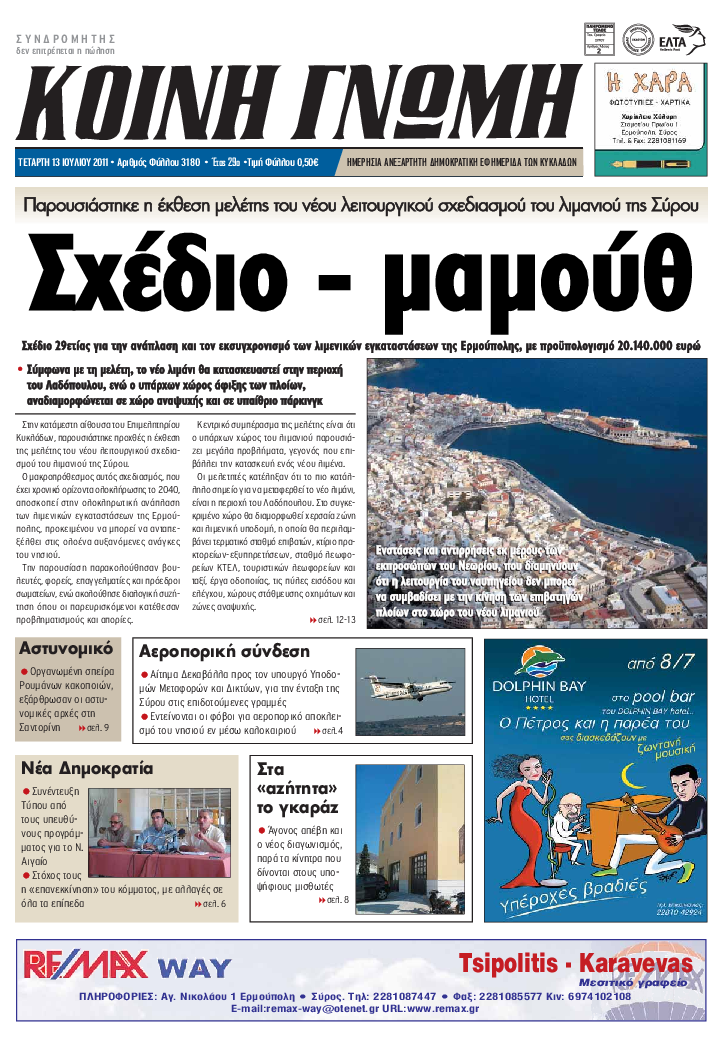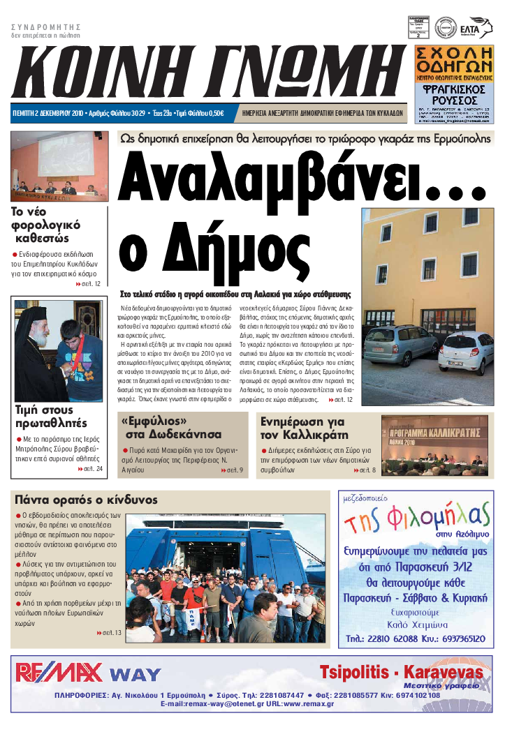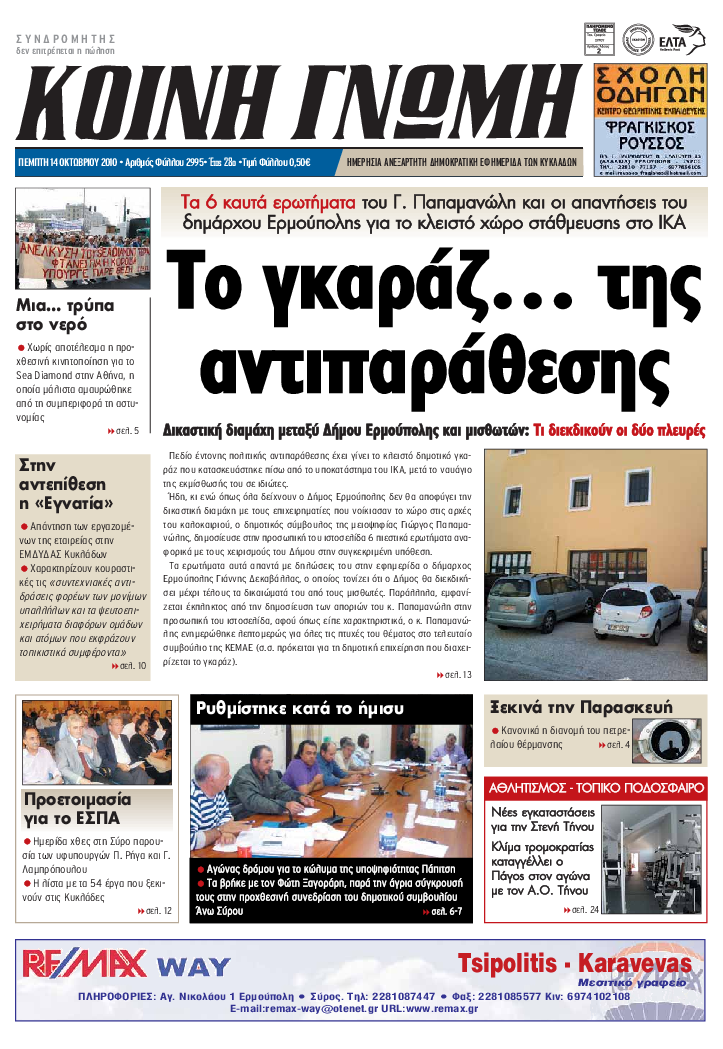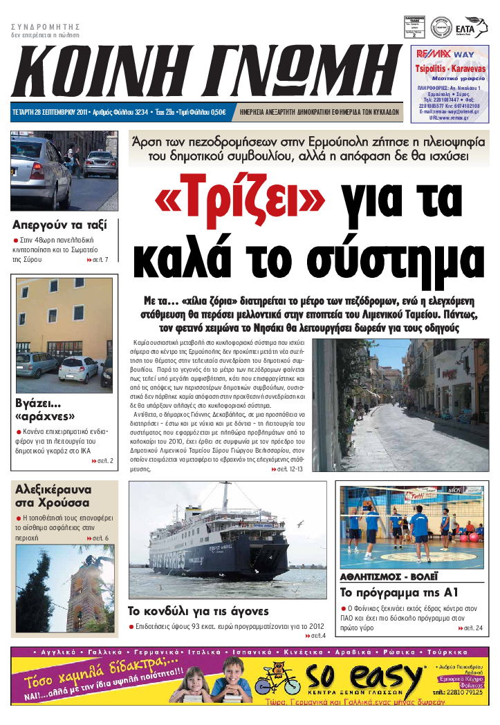 ΚΟΙΝΗ ΓΝΩΜΗ ΚΟΙΝΗ ΓΝΩΜΗ Ημερησια Εφημεριδα των Κυκλαδων