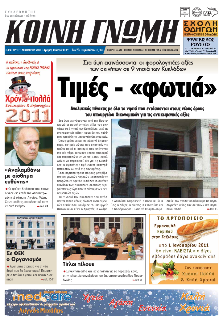 ΚΟΙΝΗ ΓΝΩΜΗ ΚΟΙΝΗ ΓΝΩΜΗ Ημερησια Εφημεριδα των Κυκλαδων