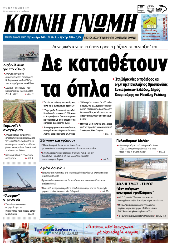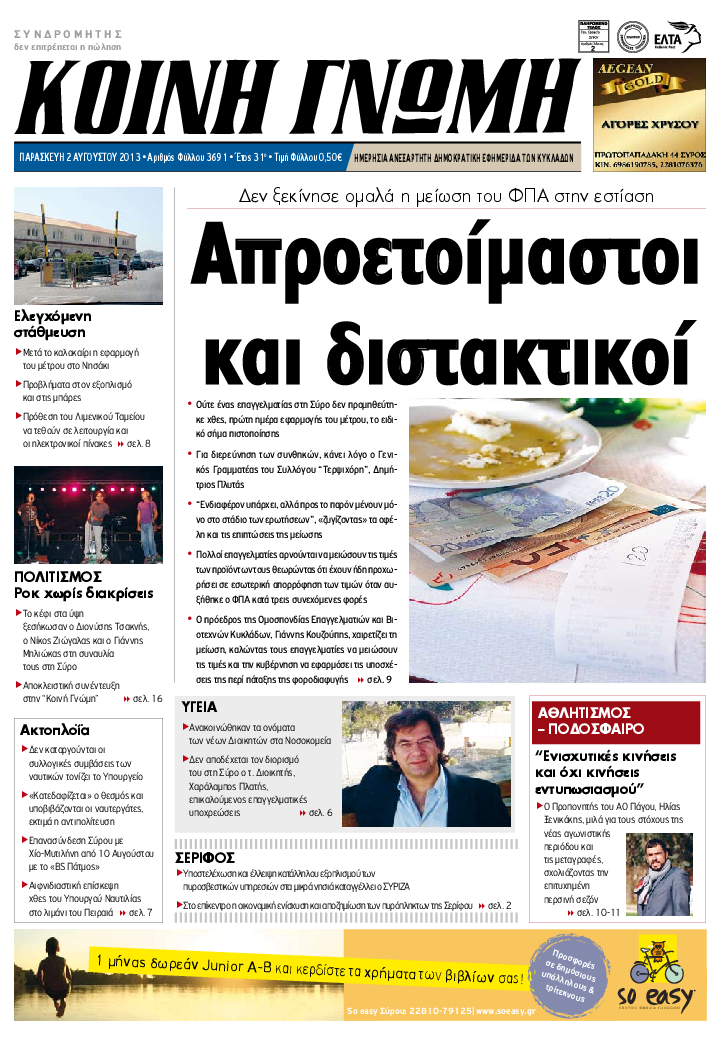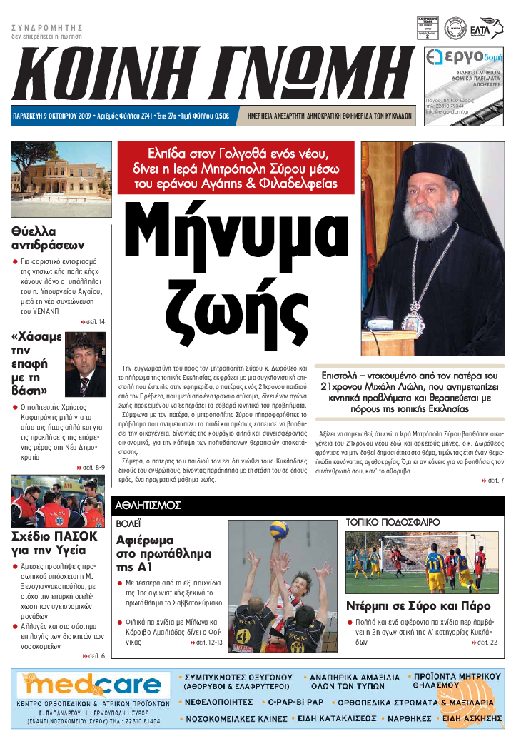 ΚΟΙΝΗ ΓΝΩΜΗ ΚΟΙΝΗ ΓΝΩΜΗ Ημερησια Εφημεριδα των Κυκλαδων