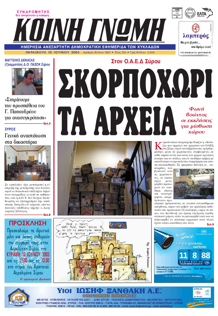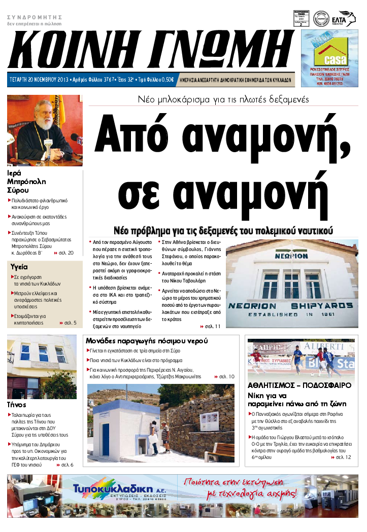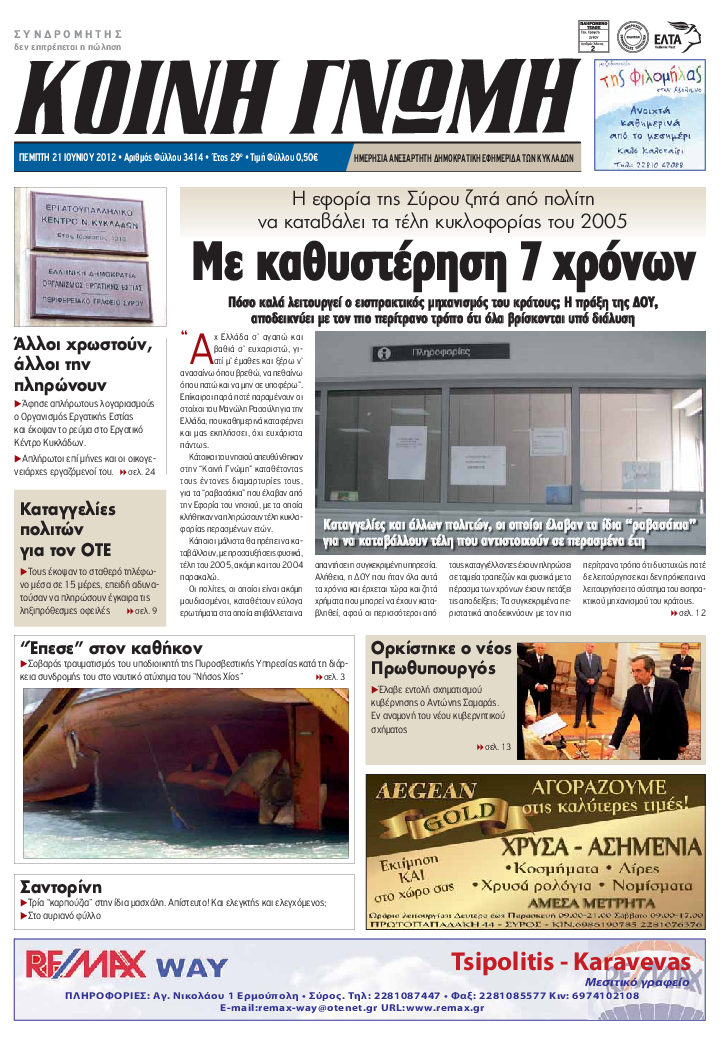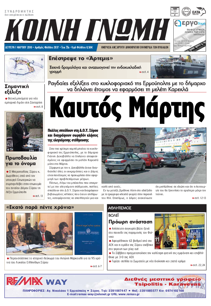 ΚΟΙΝΗ ΓΝΩΜΗ ΚΟΙΝΗ ΓΝΩΜΗ Ημερησια Εφημεριδα των Κυκλαδων
