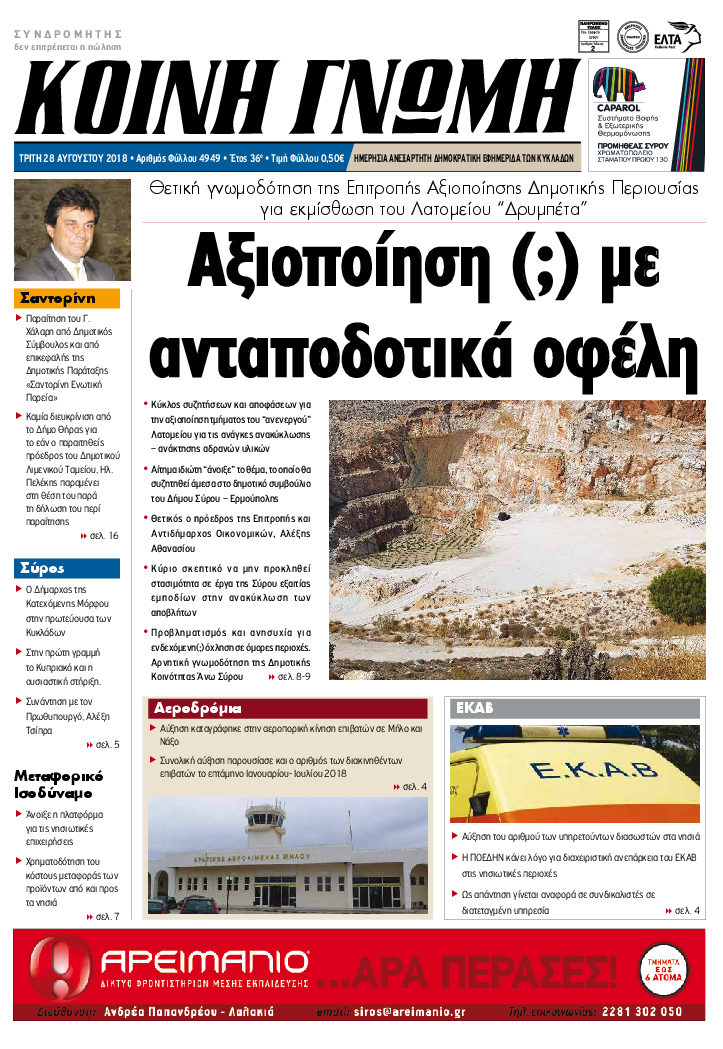 ΚΟΙΝΗ ΓΝΩΜΗ ΚΟΙΝΗ ΓΝΩΜΗ Ημερησια Εφημεριδα των Κυκλαδων