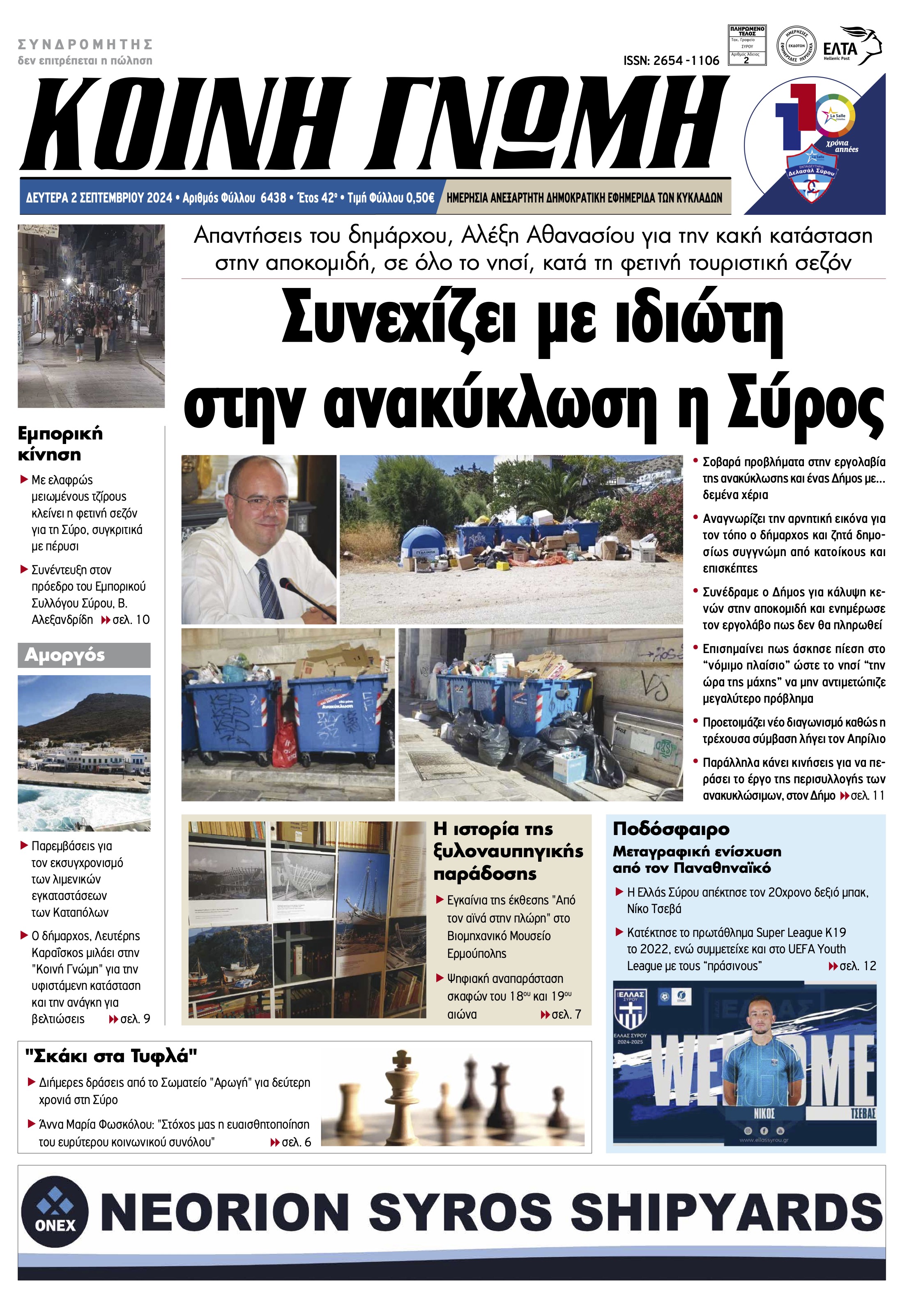 ΚΟΙΝΗ ΓΝΩΜΗ ΚΟΙΝΗ ΓΝΩΜΗ Ημερησια Εφημεριδα των Κυκλαδων