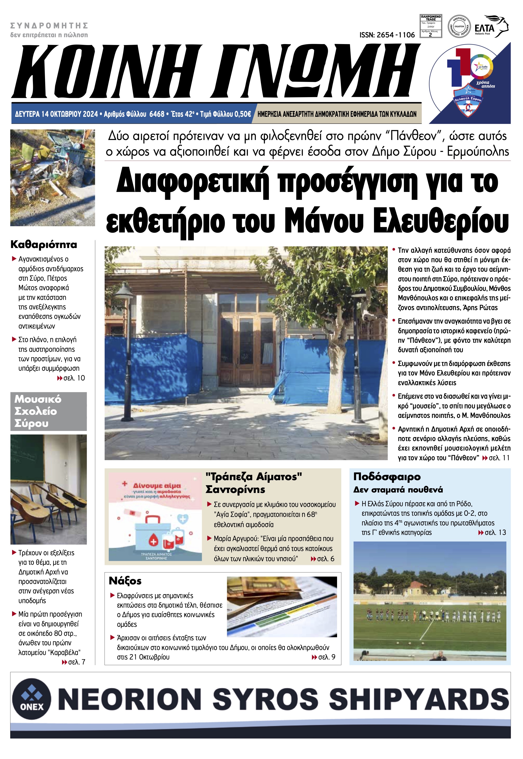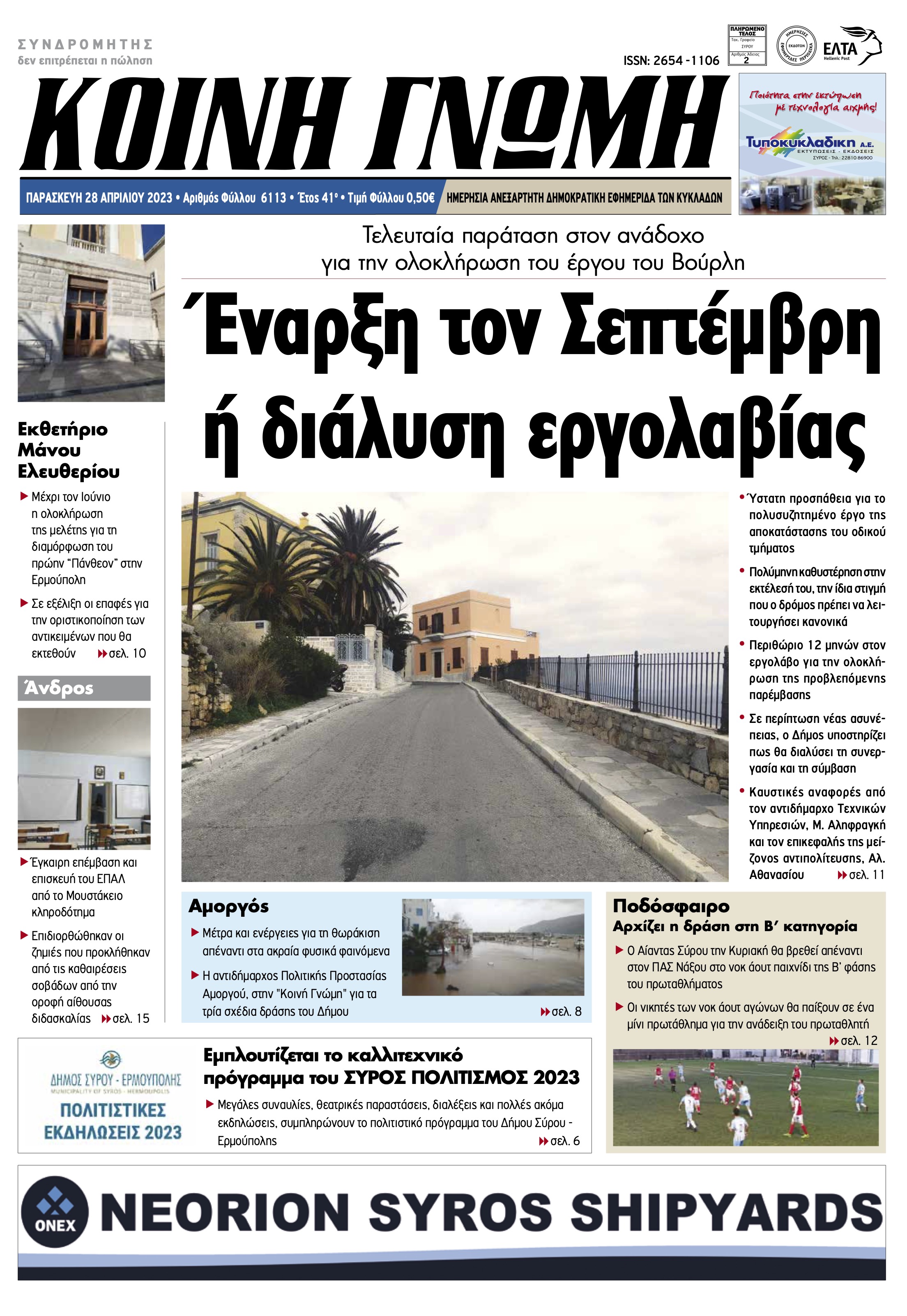 ΚΟΙΝΗ ΓΝΩΜΗ ΚΟΙΝΗ ΓΝΩΜΗ Ημερησια Εφημεριδα των Κυκλαδων