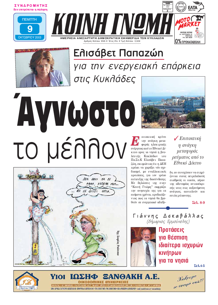 ΚΟΙΝΗ ΓΝΩΜΗ ΚΟΙΝΗ ΓΝΩΜΗ Ημερησια Εφημεριδα των Κυκλαδων