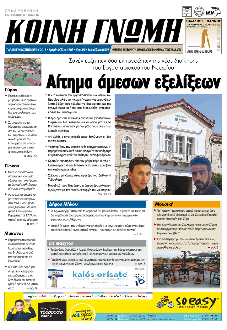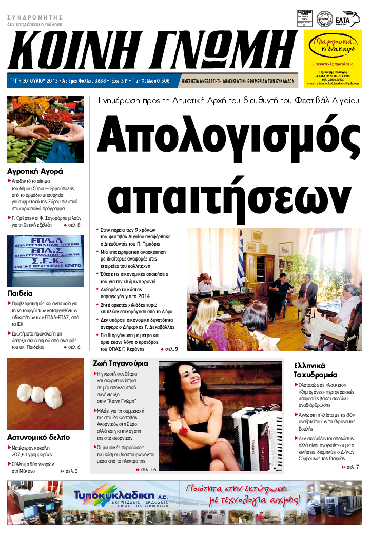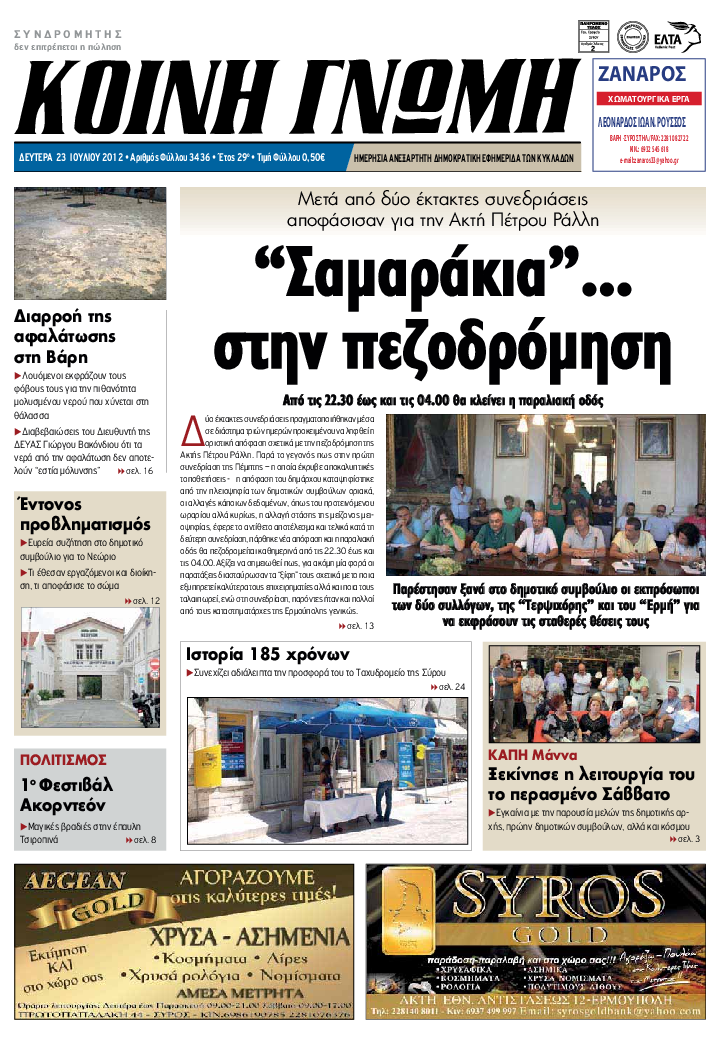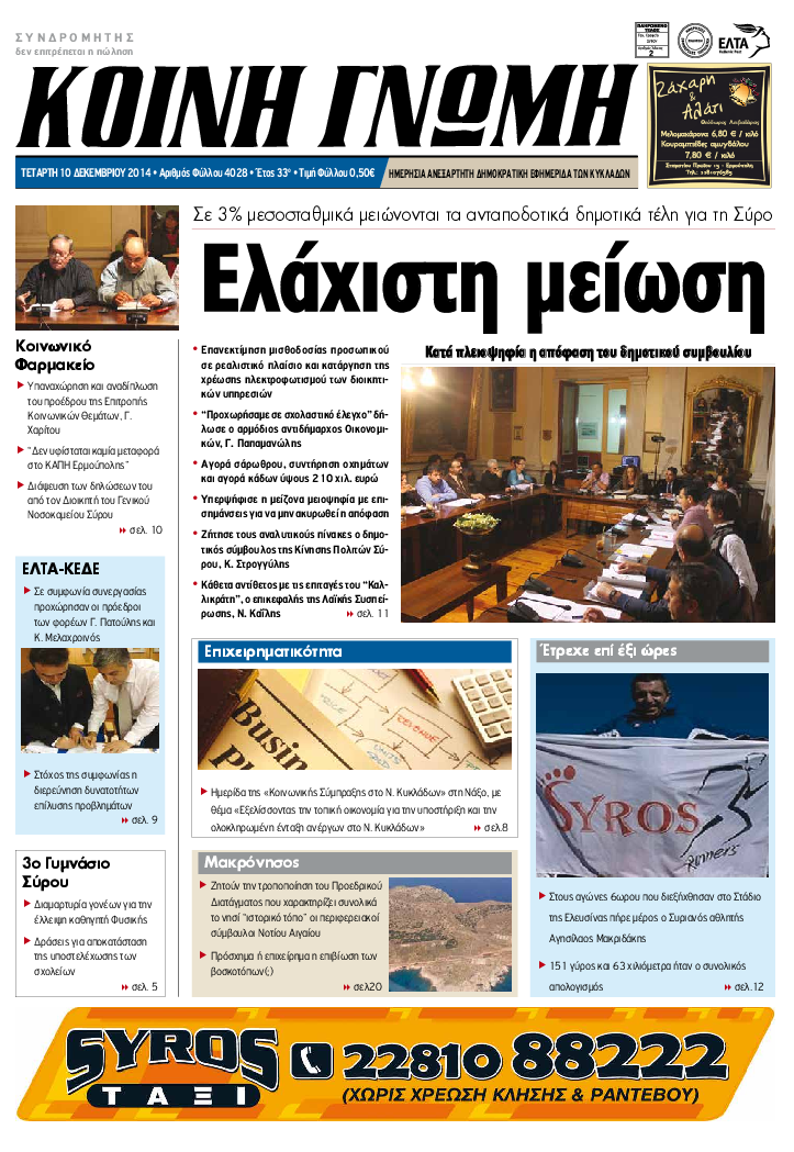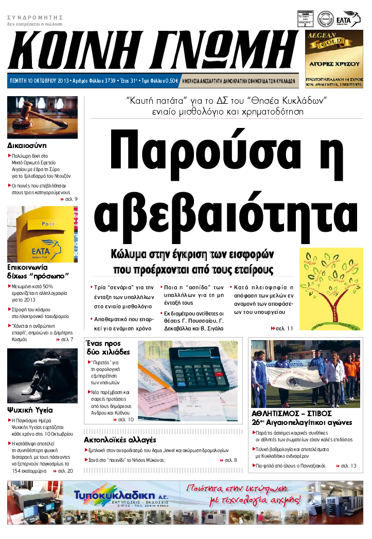 ΚΟΙΝΗ ΓΝΩΜΗ ΚΟΙΝΗ ΓΝΩΜΗ Ημερησια Εφημεριδα των Κυκλαδων