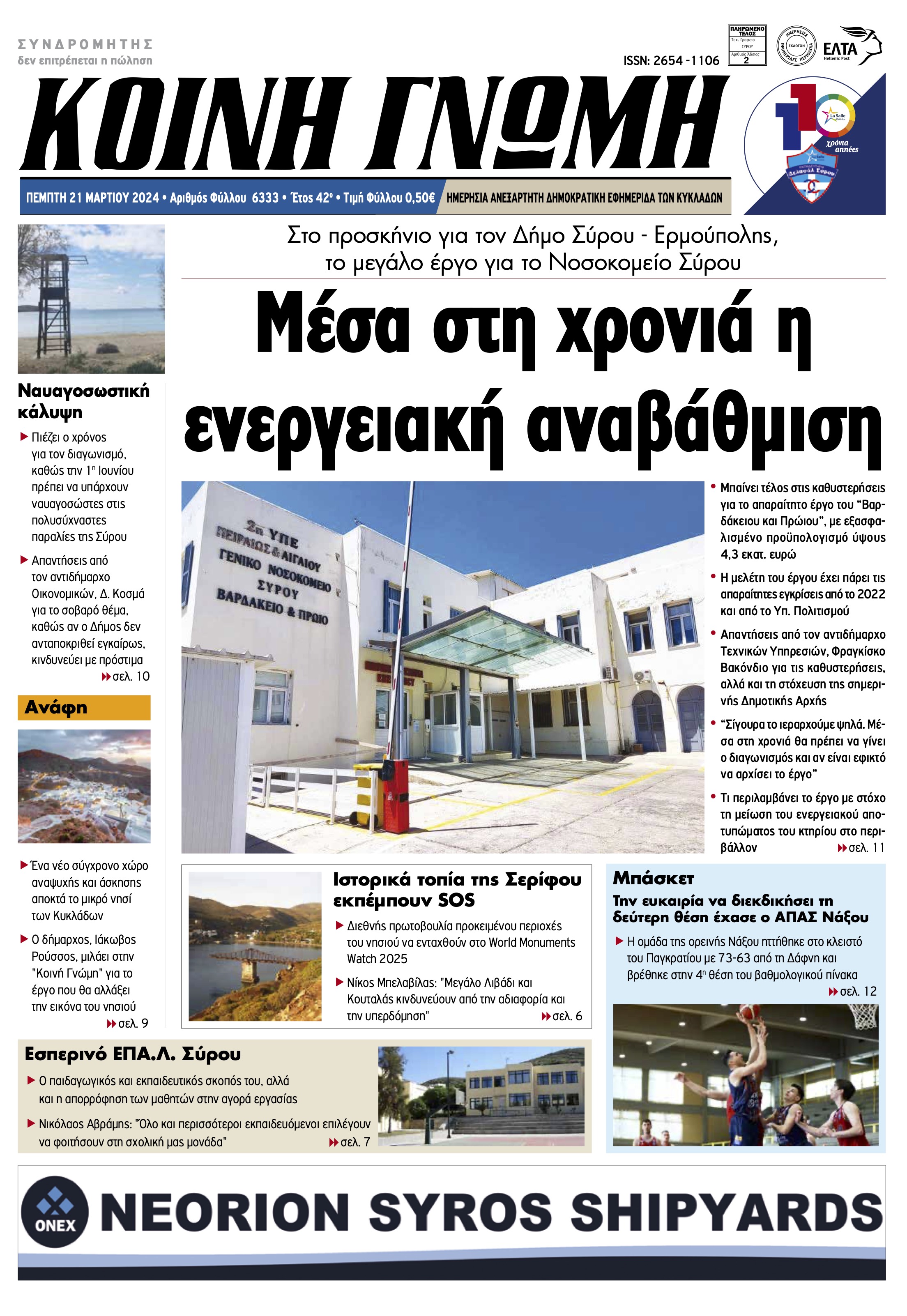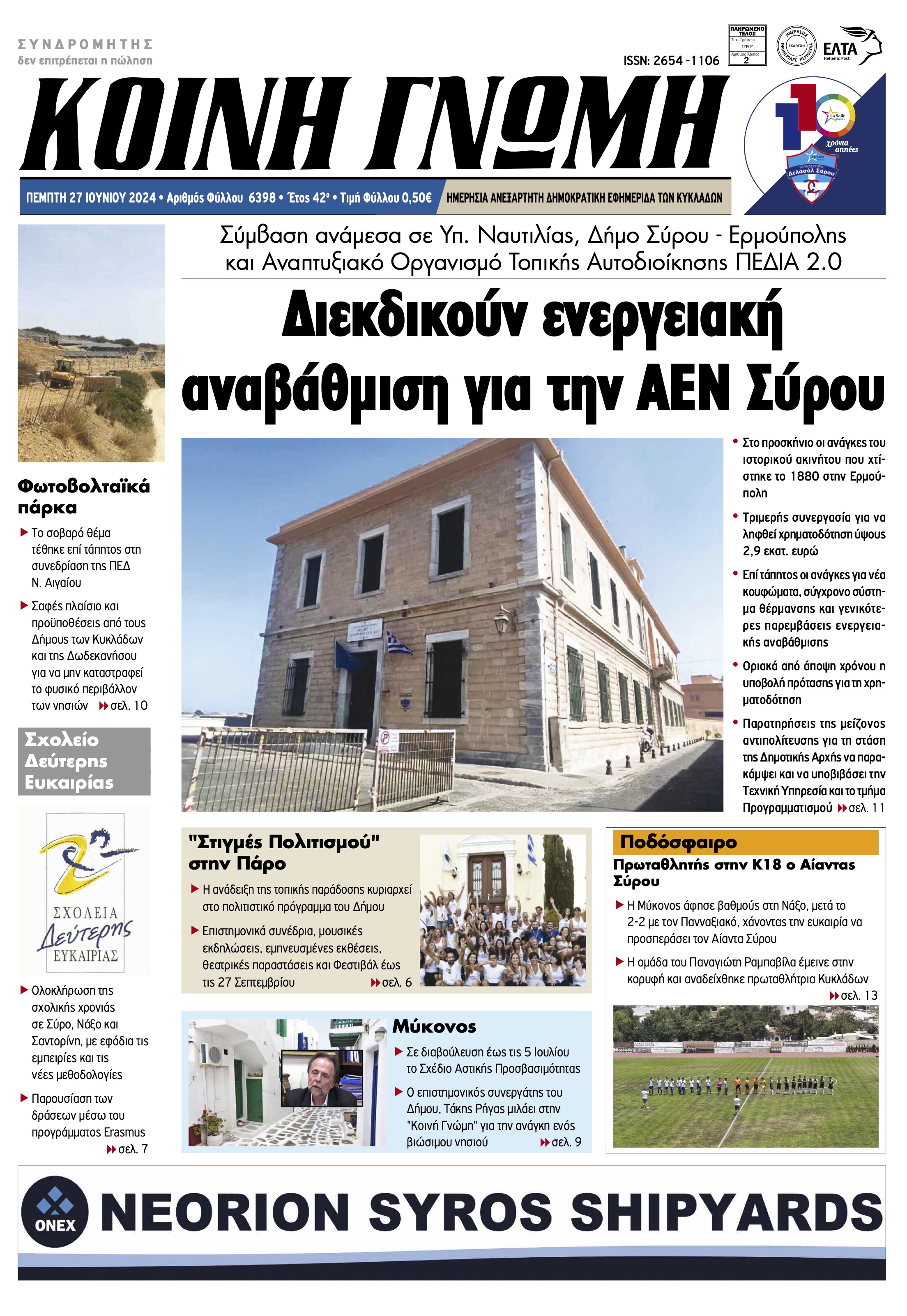 ΚΟΙΝΗ ΓΝΩΜΗ ΚΟΙΝΗ ΓΝΩΜΗ Ημερησια Εφημεριδα των Κυκλαδων