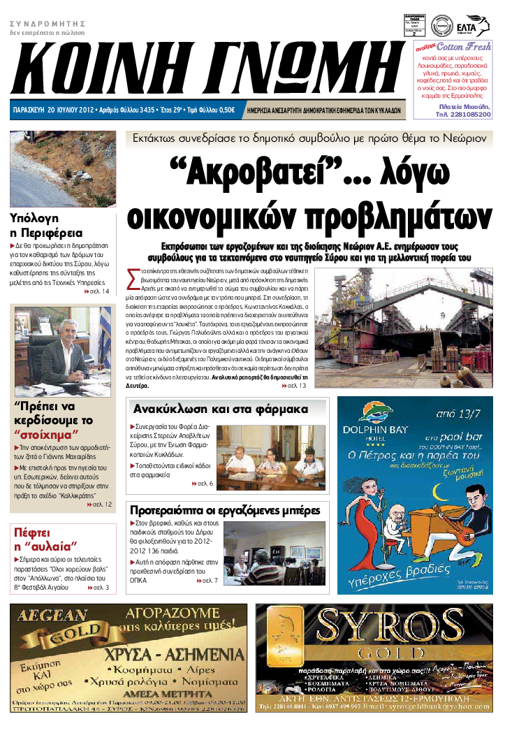 ΚΟΙΝΗ ΓΝΩΜΗ ΚΟΙΝΗ ΓΝΩΜΗ Ημερησια Εφημεριδα των Κυκλαδων