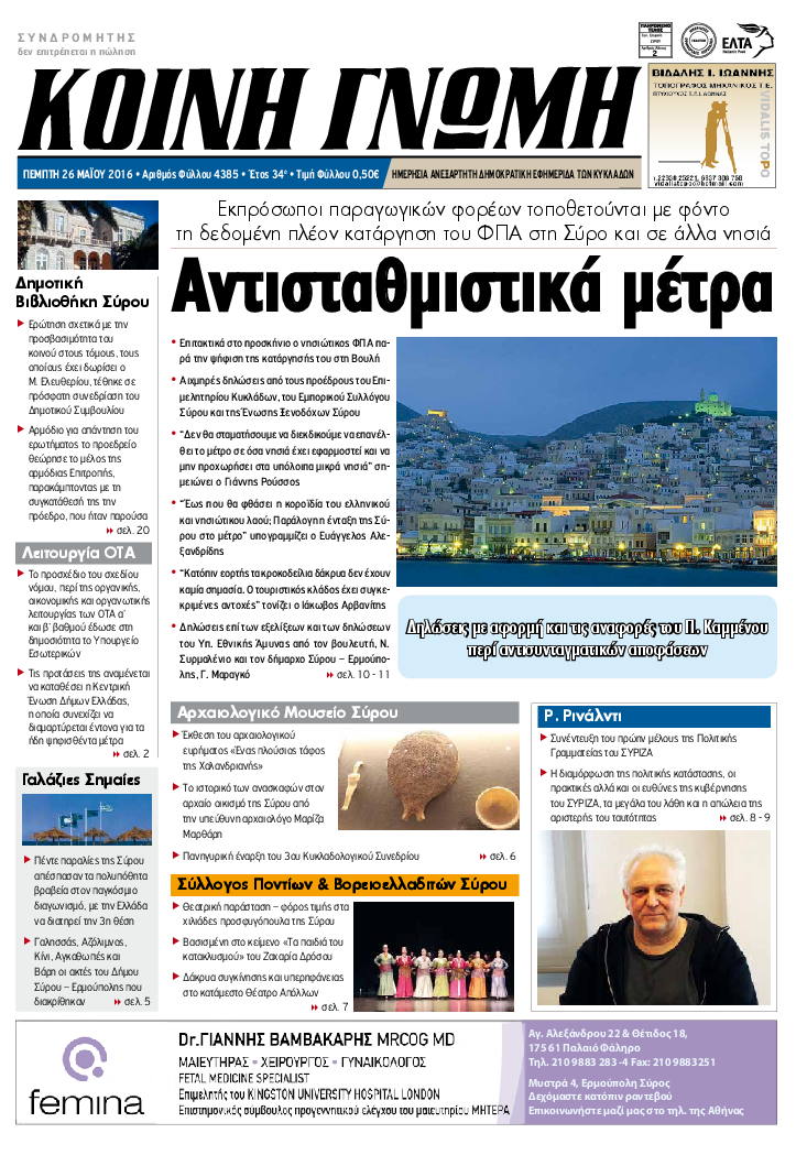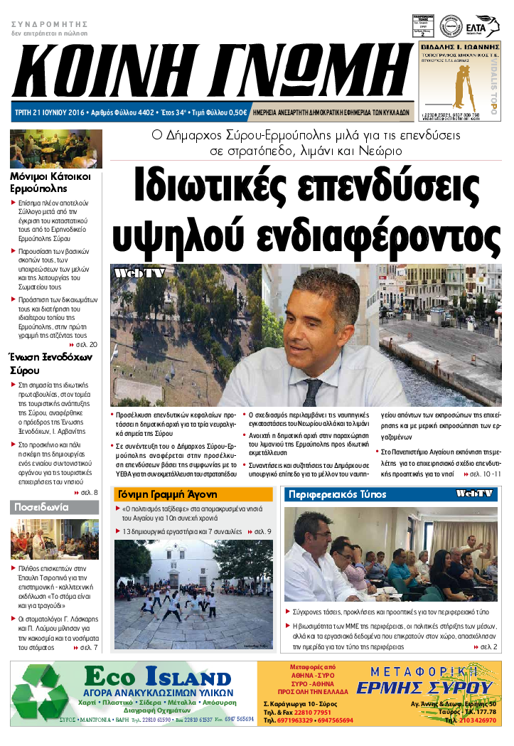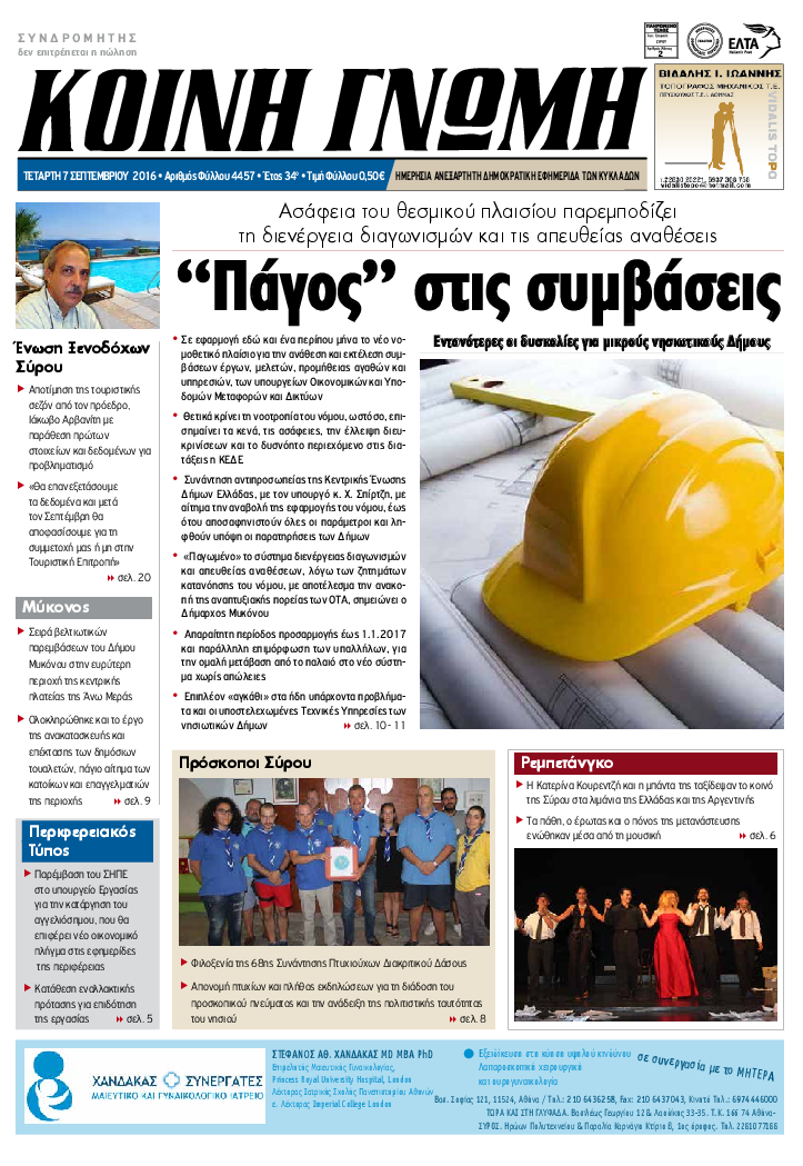 ΚΟΙΝΗ ΓΝΩΜΗ ΚΟΙΝΗ ΓΝΩΜΗ Ημερησια Εφημεριδα των Κυκλαδων