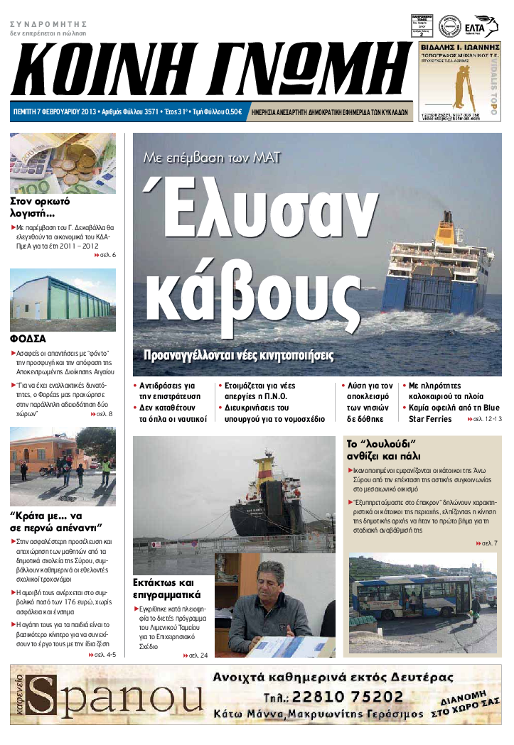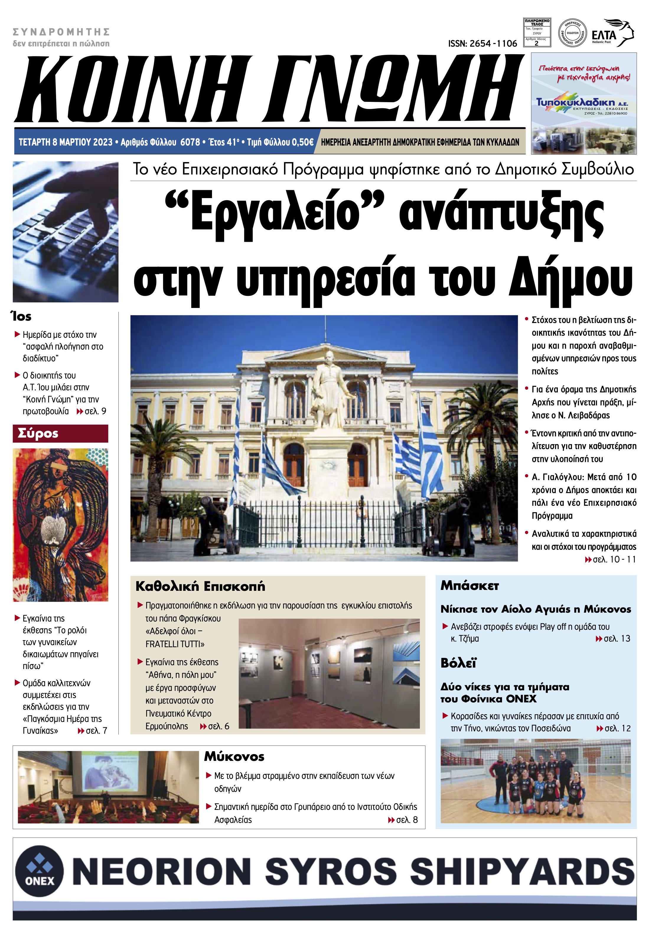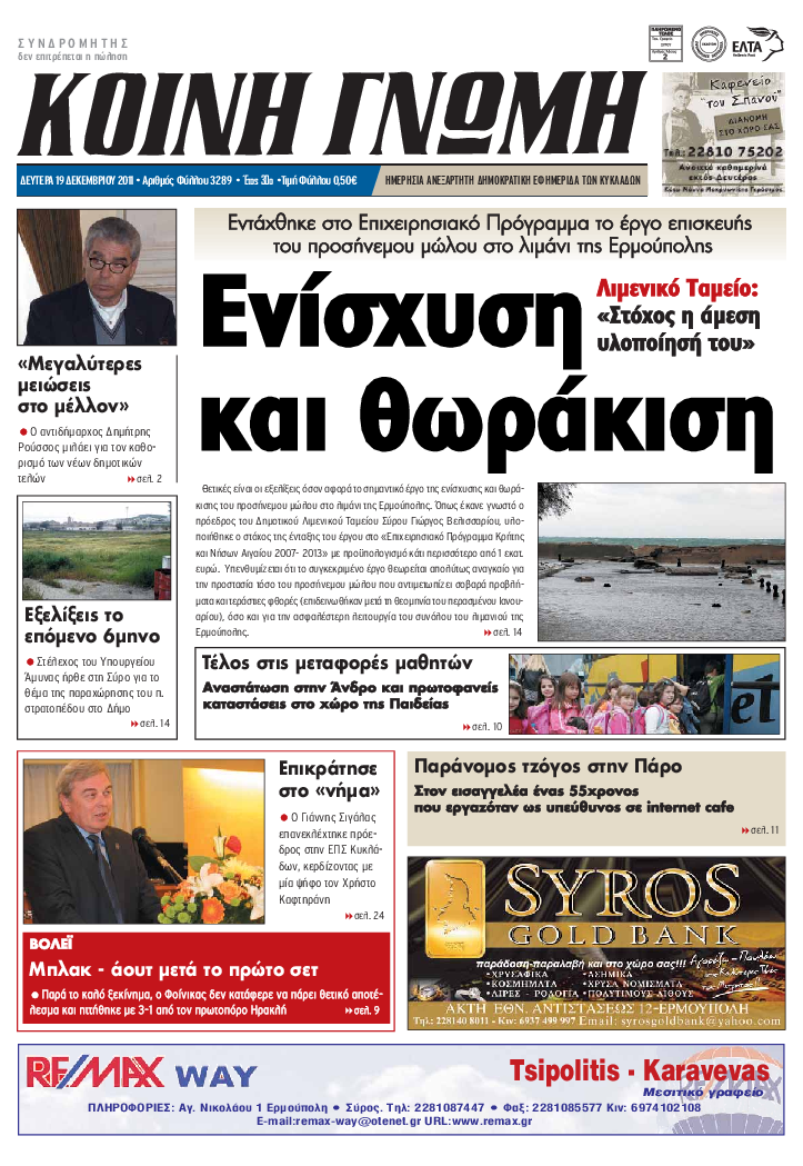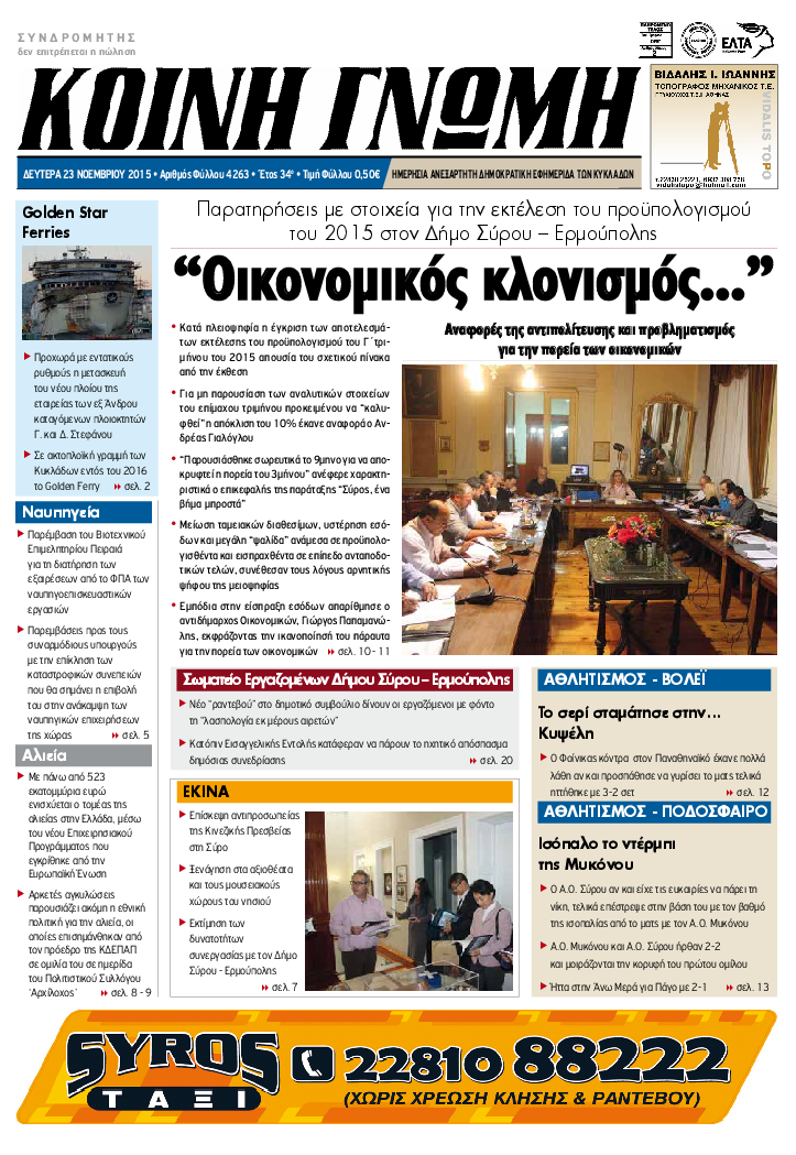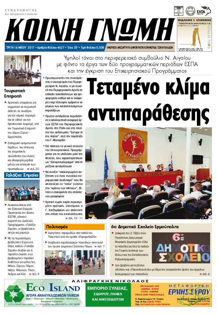 ΚΟΙΝΗ ΓΝΩΜΗ ΚΟΙΝΗ ΓΝΩΜΗ Ημερησια Εφημεριδα των Κυκλαδων