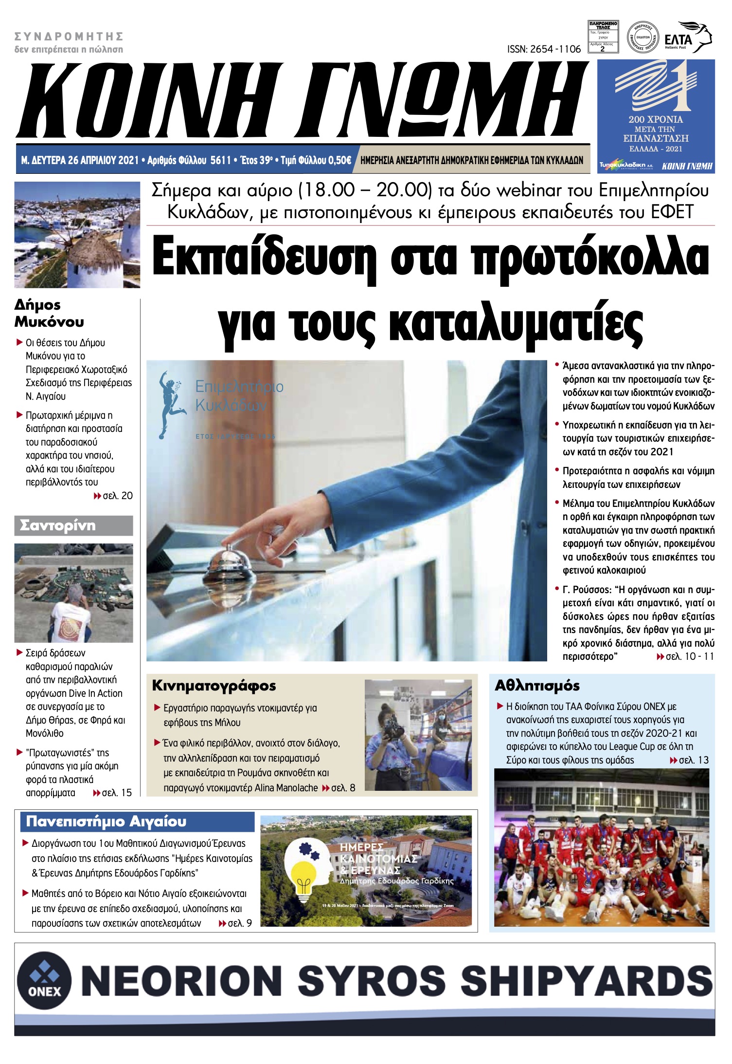 ΚΟΙΝΗ ΓΝΩΜΗ ΚΟΙΝΗ ΓΝΩΜΗ Ημερησια Εφημεριδα των Κυκλαδων