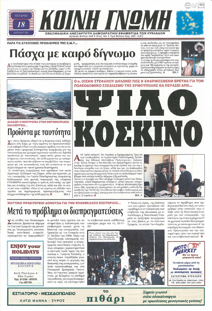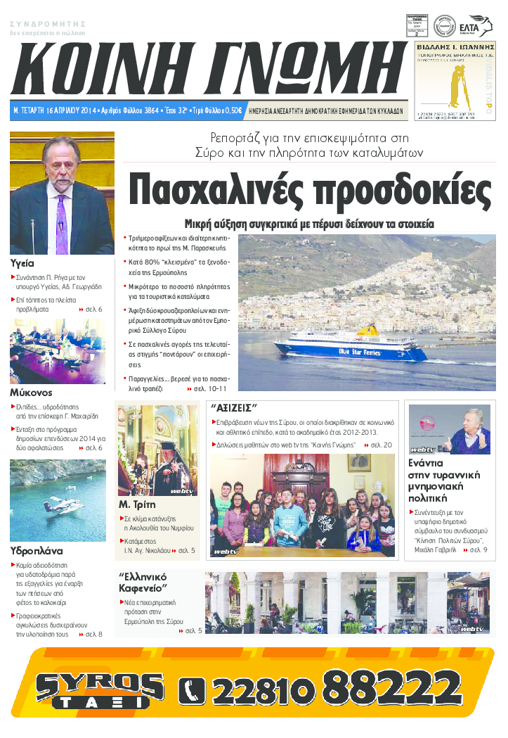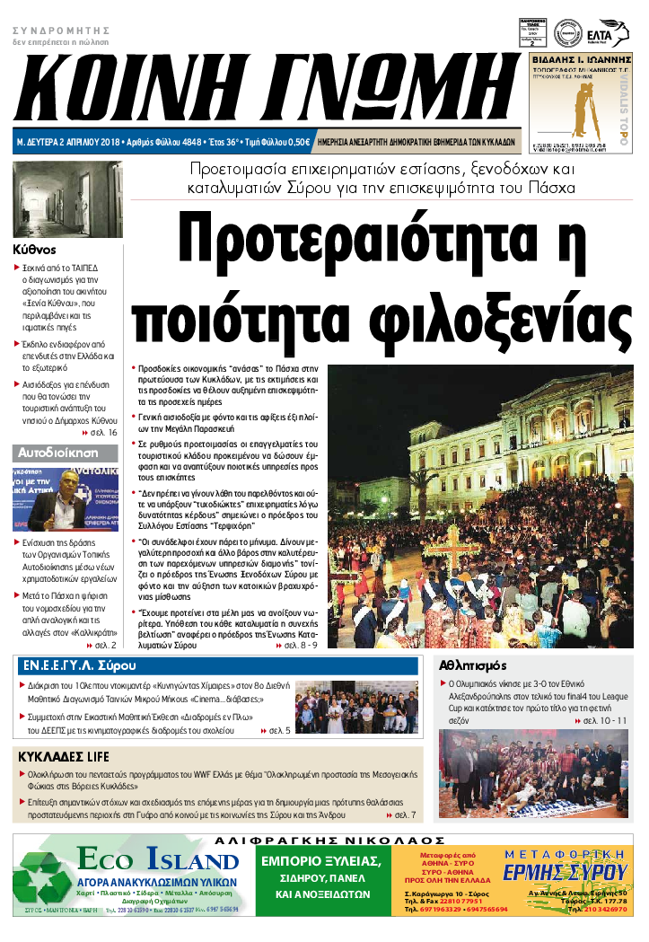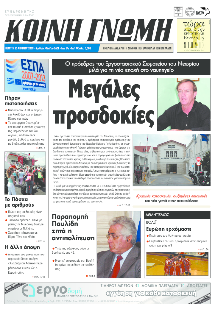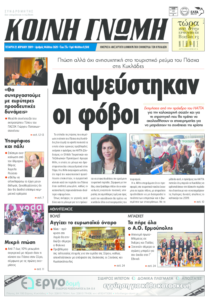 ΚΟΙΝΗ ΓΝΩΜΗ ΚΟΙΝΗ ΓΝΩΜΗ Ημερησια Εφημεριδα των Κυκλαδων