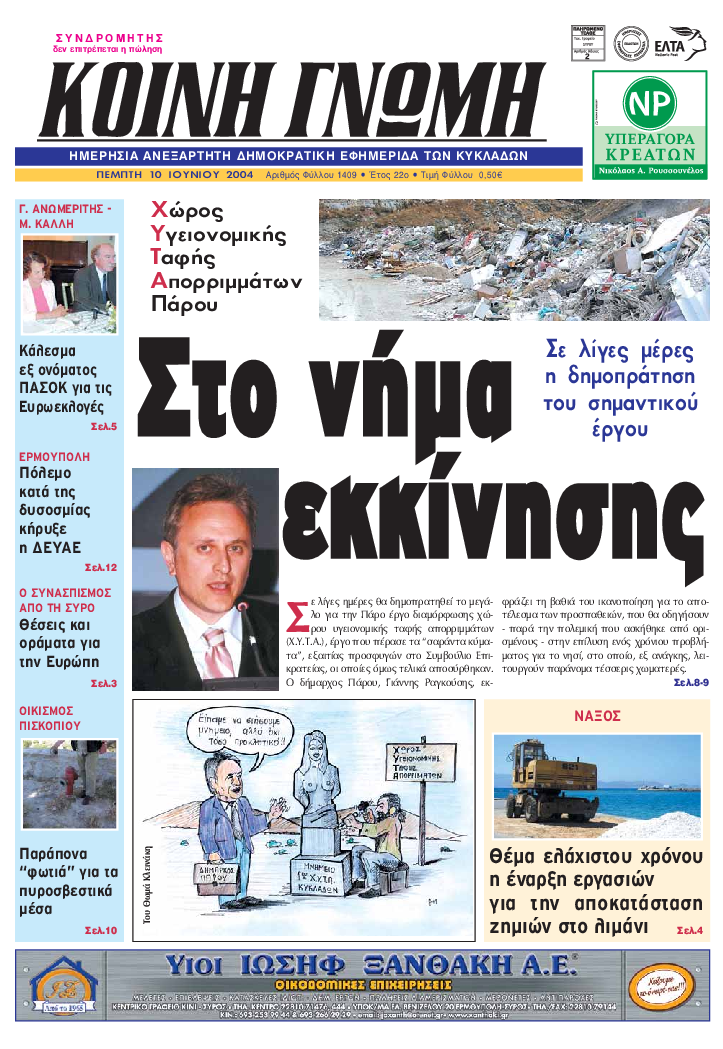 ΚΟΙΝΗ ΓΝΩΜΗ ΚΟΙΝΗ ΓΝΩΜΗ Ημερησια Εφημεριδα των Κυκλαδων