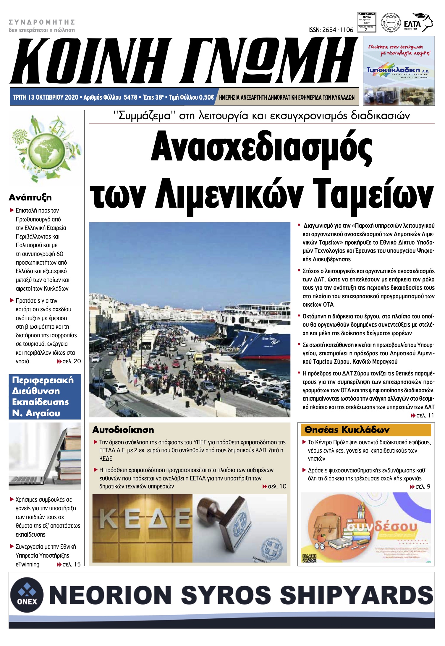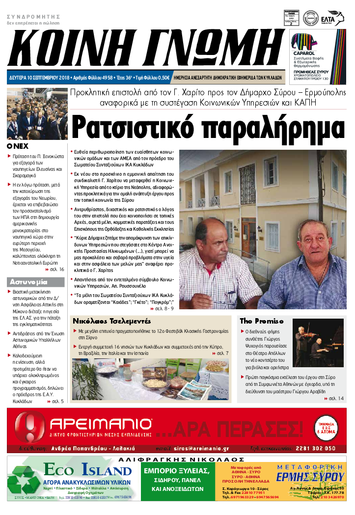 ΚΟΙΝΗ ΓΝΩΜΗ ΚΟΙΝΗ ΓΝΩΜΗ Ημερησια Εφημεριδα των Κυκλαδων