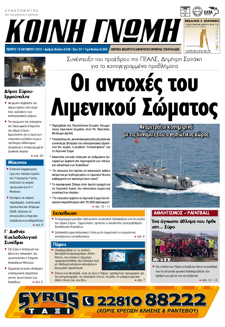 ΚΟΙΝΗ ΓΝΩΜΗ ΚΟΙΝΗ ΓΝΩΜΗ Ημερησια Εφημεριδα των Κυκλαδων