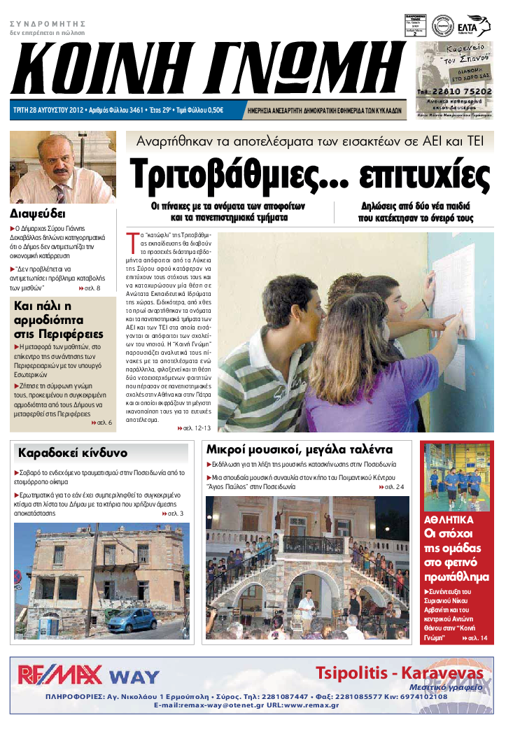 ΚΟΙΝΗ ΓΝΩΜΗ ΚΟΙΝΗ ΓΝΩΜΗ Ημερησια Εφημεριδα των Κυκλαδων
