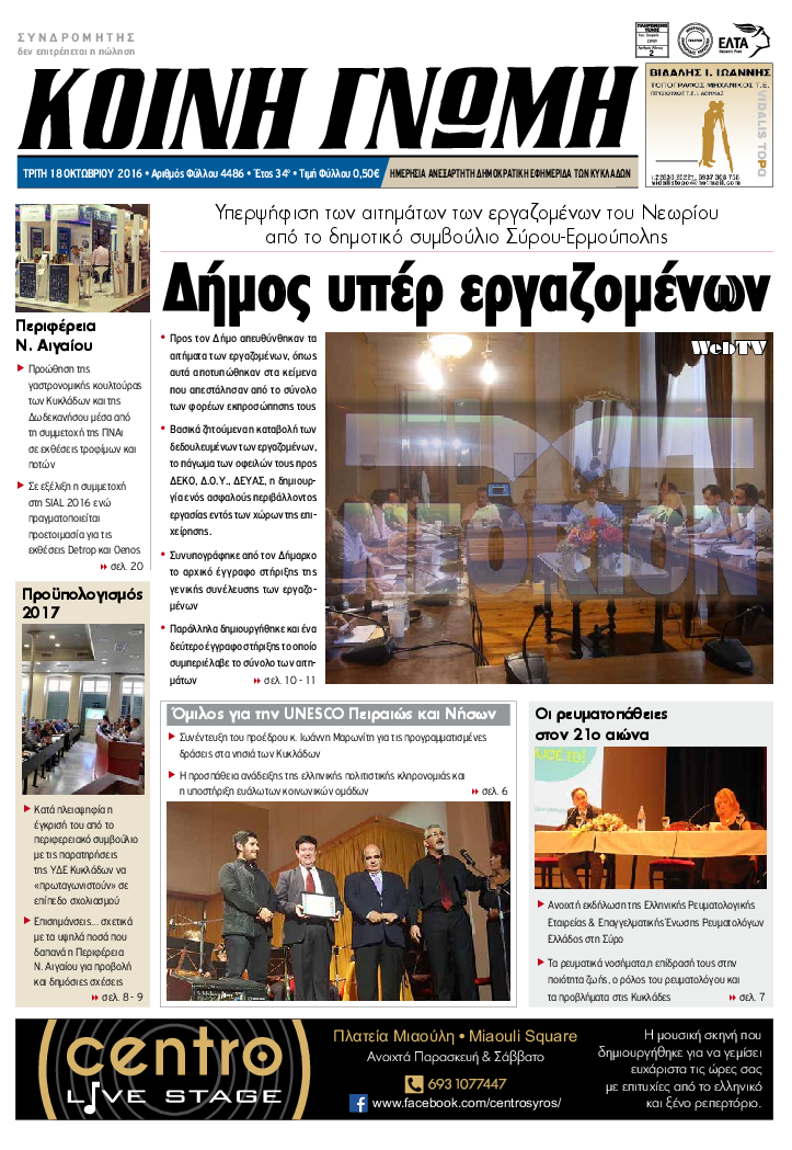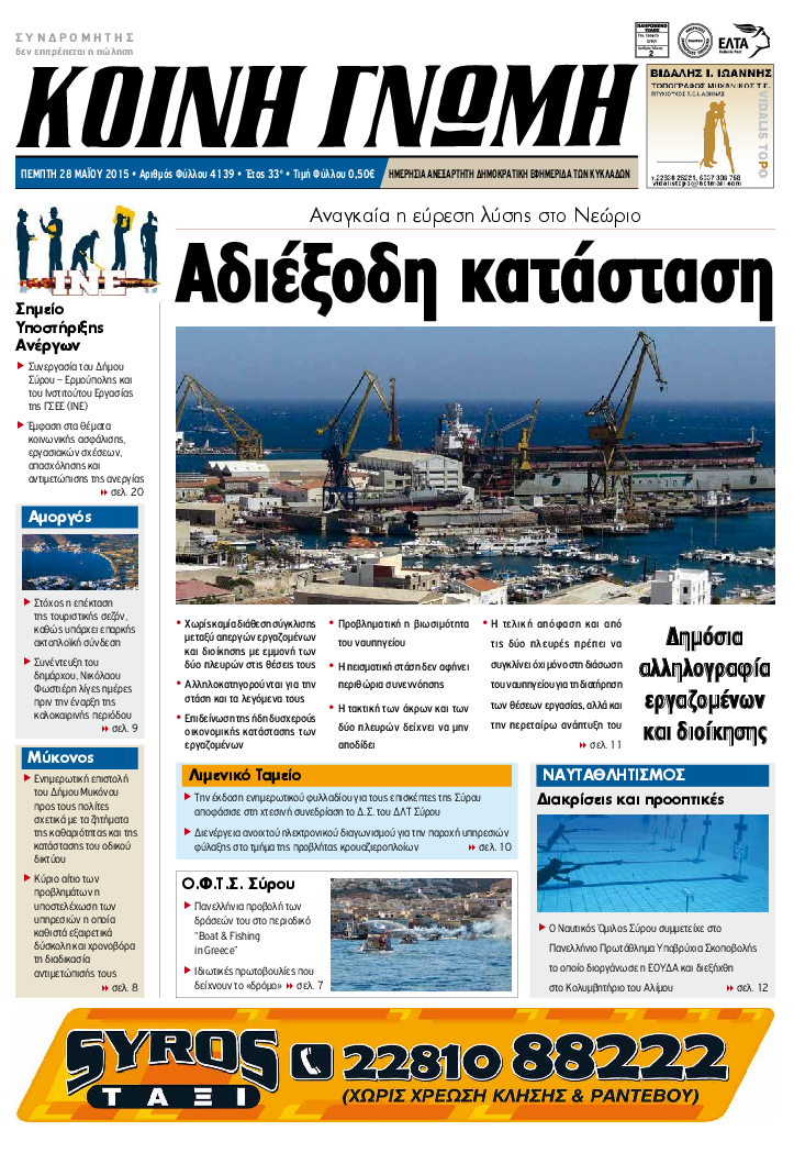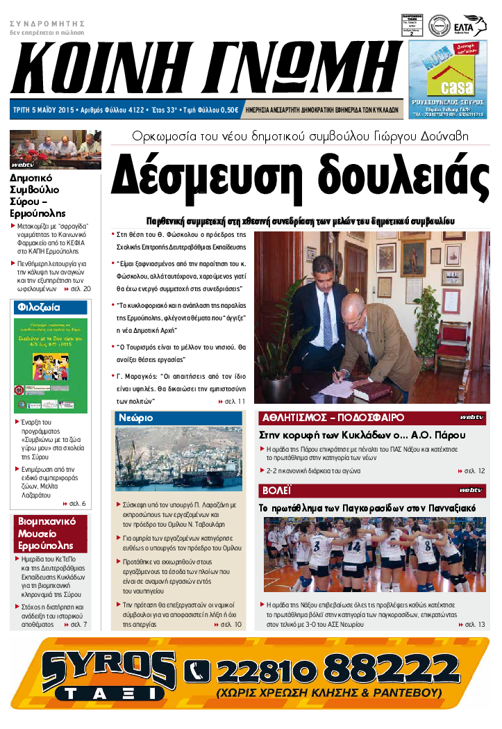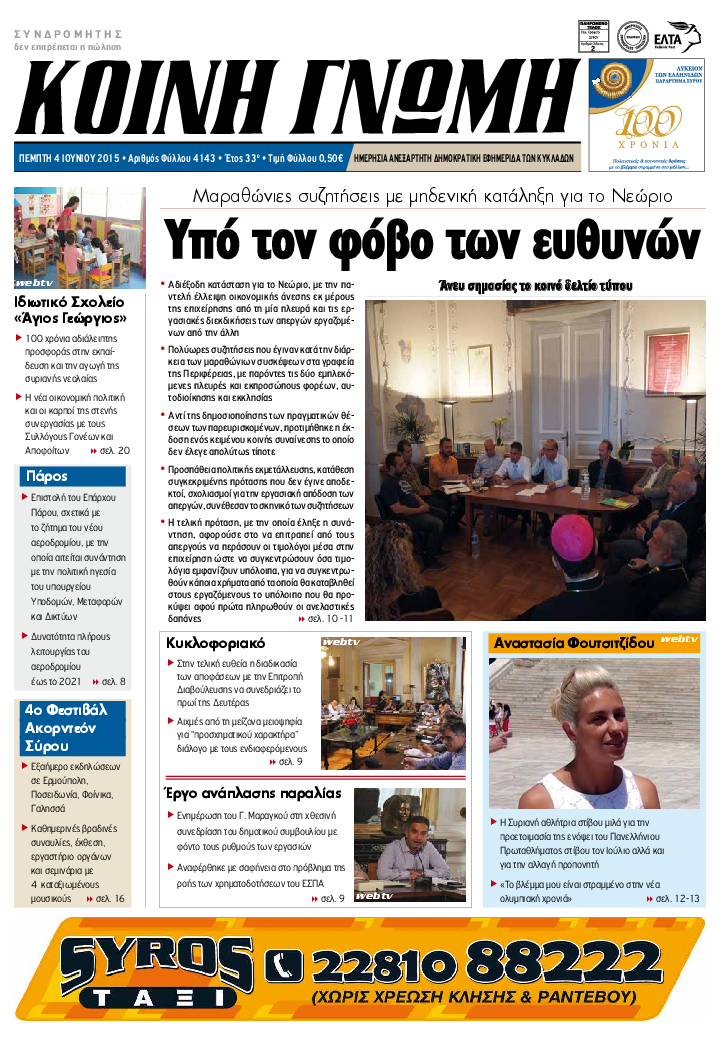 ΚΟΙΝΗ ΓΝΩΜΗ ΚΟΙΝΗ ΓΝΩΜΗ Ημερησια Εφημεριδα των Κυκλαδων