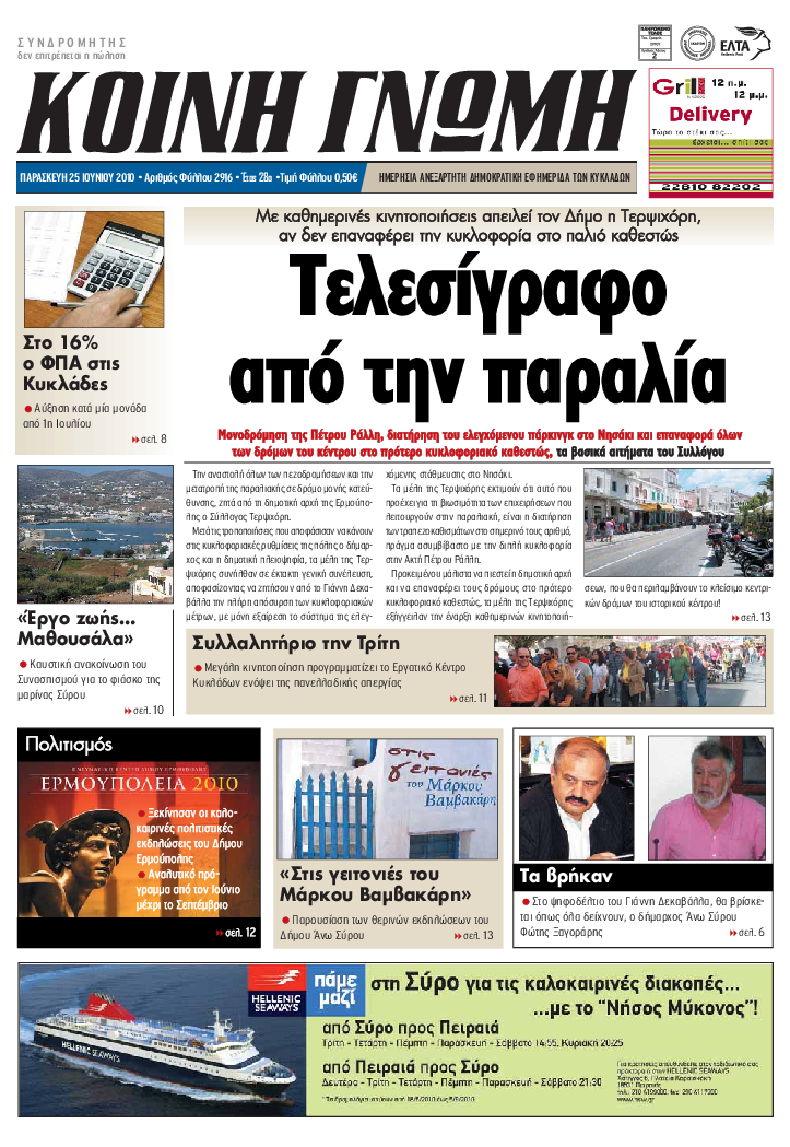 ΚΟΙΝΗ ΓΝΩΜΗ ΚΟΙΝΗ ΓΝΩΜΗ Ημερησια Εφημεριδα των Κυκλαδων