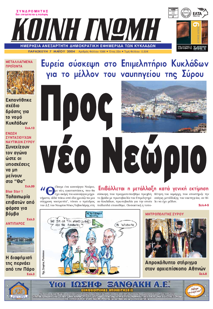 ΚΟΙΝΗ ΓΝΩΜΗ ΚΟΙΝΗ ΓΝΩΜΗ Ημερησια Εφημεριδα των Κυκλαδων