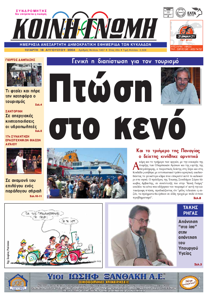 ΚΟΙΝΗ ΓΝΩΜΗ ΚΟΙΝΗ ΓΝΩΜΗ Ημερησια Εφημεριδα των Κυκλαδων