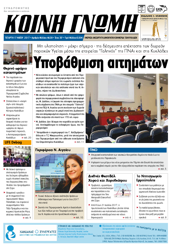 ΚΟΙΝΗ ΓΝΩΜΗ ΚΟΙΝΗ ΓΝΩΜΗ Ημερησια Εφημεριδα των Κυκλαδων
