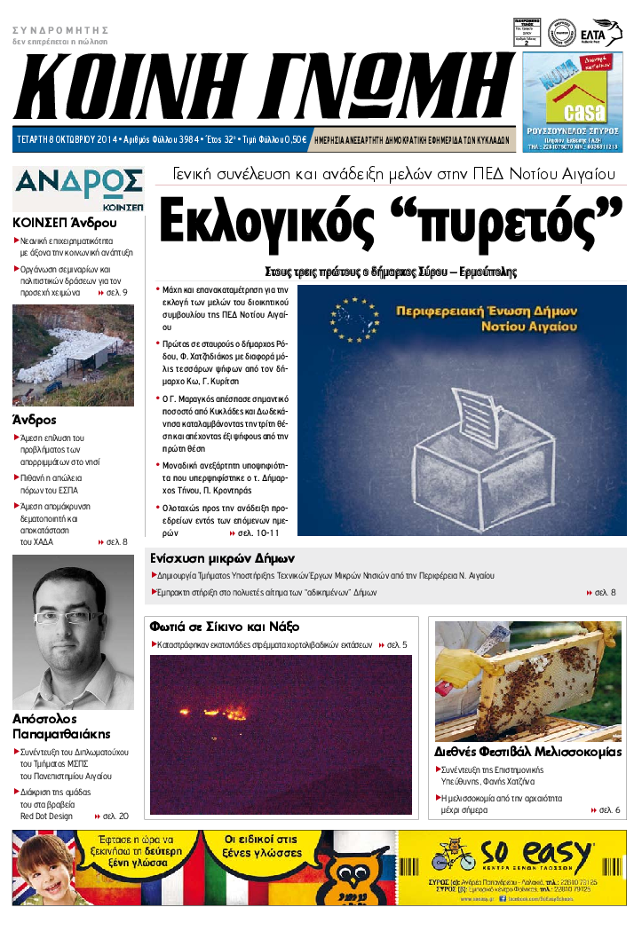 ΚΟΙΝΗ ΓΝΩΜΗ ΚΟΙΝΗ ΓΝΩΜΗ Ημερησια Εφημεριδα των Κυκλαδων