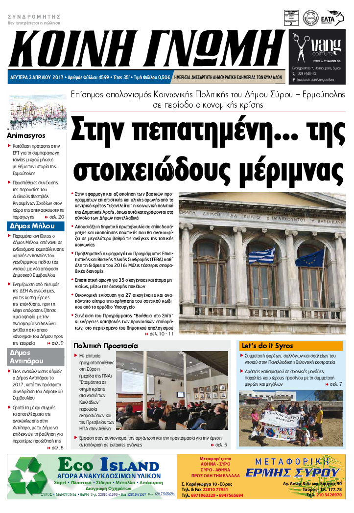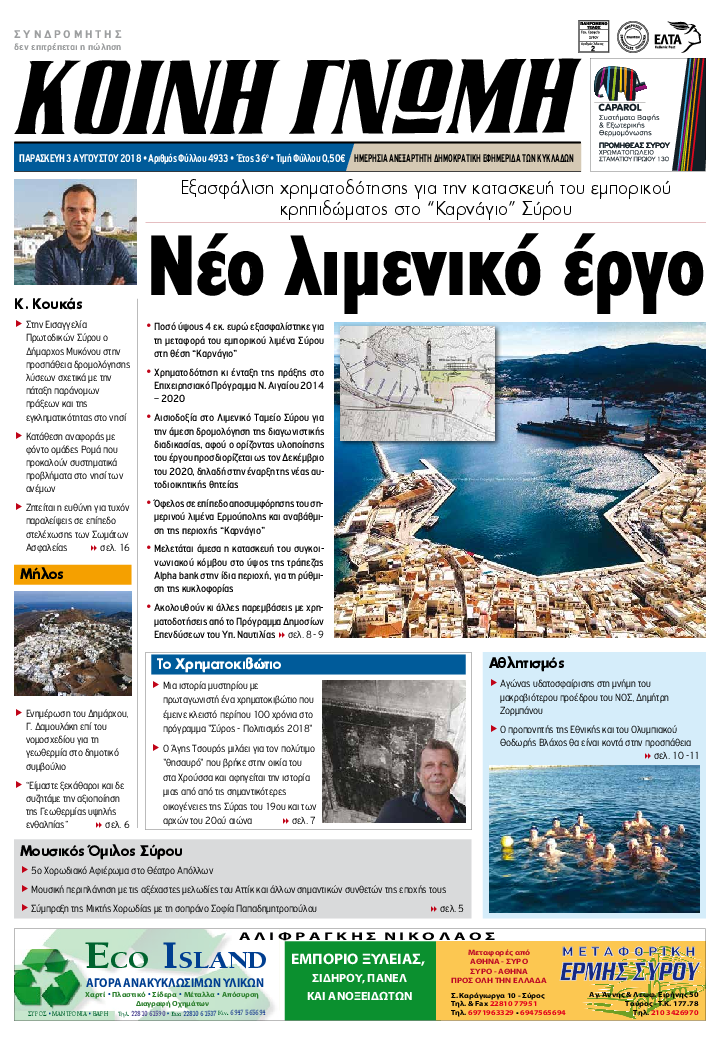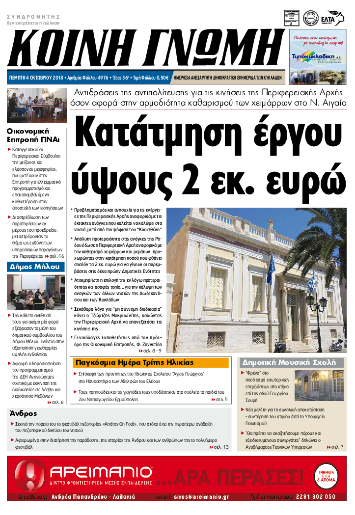 ΚΟΙΝΗ ΓΝΩΜΗ ΚΟΙΝΗ ΓΝΩΜΗ Ημερησια Εφημεριδα των Κυκλαδων