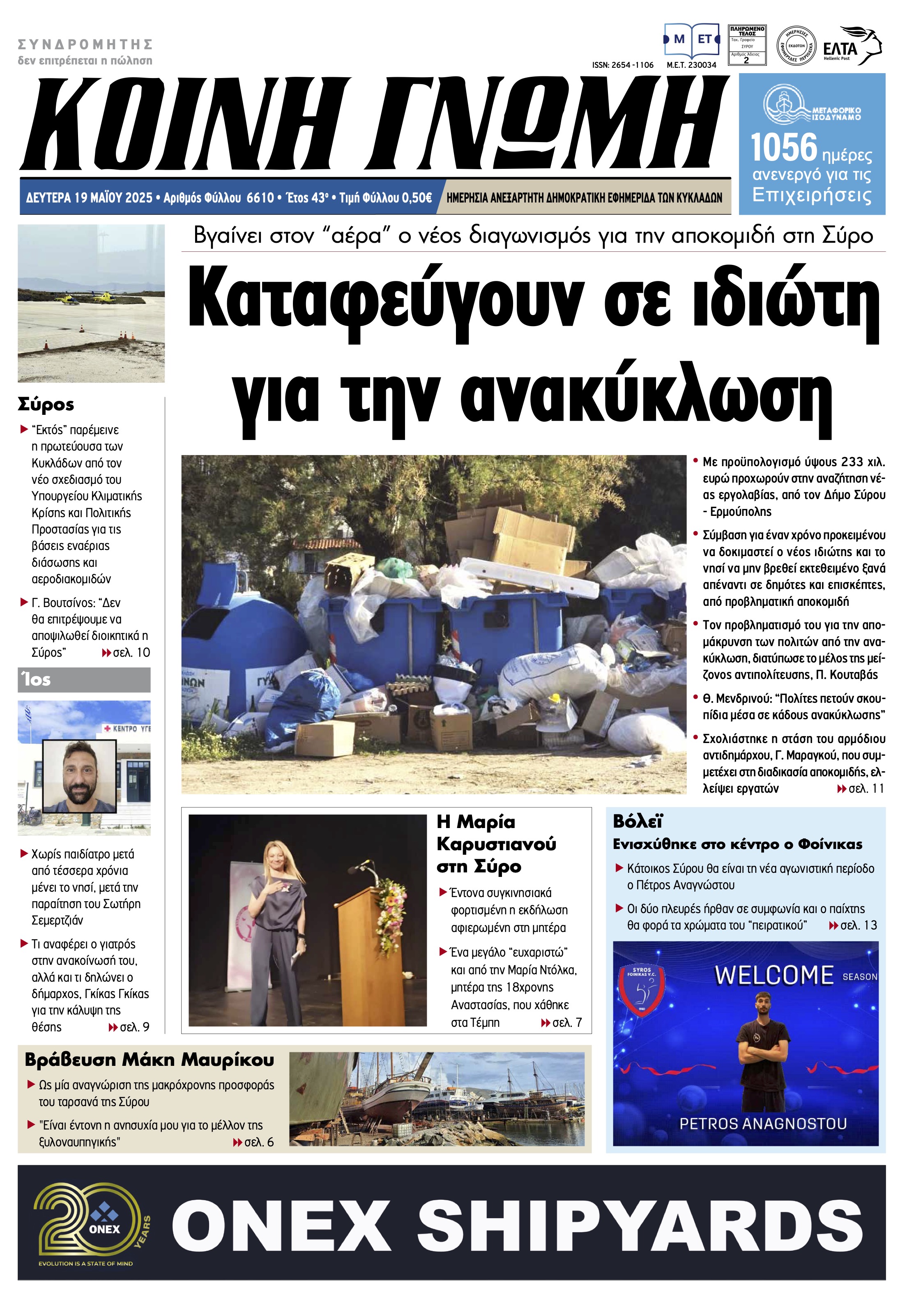 ΚΟΙΝΗ ΓΝΩΜΗ ΚΟΙΝΗ ΓΝΩΜΗ Ημερησια Εφημεριδα των Κυκλαδων
