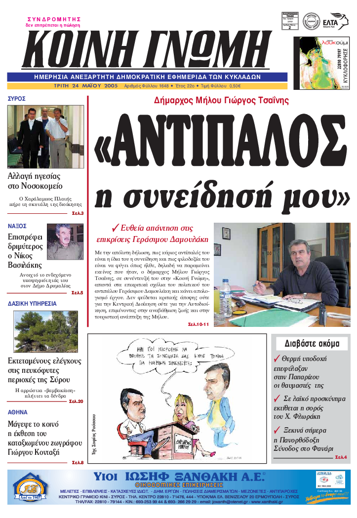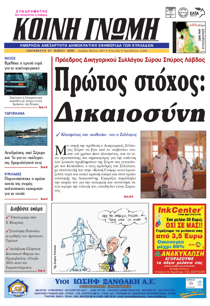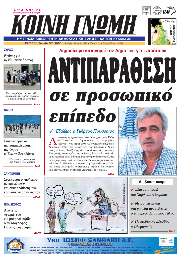 ΚΟΙΝΗ ΓΝΩΜΗ ΚΟΙΝΗ ΓΝΩΜΗ Ημερησια Εφημεριδα των Κυκλαδων