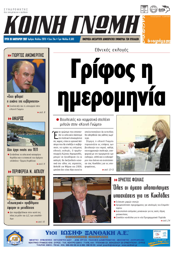 ΚΟΙΝΗ ΓΝΩΜΗ ΚΟΙΝΗ ΓΝΩΜΗ Ημερησια Εφημεριδα των Κυκλαδων