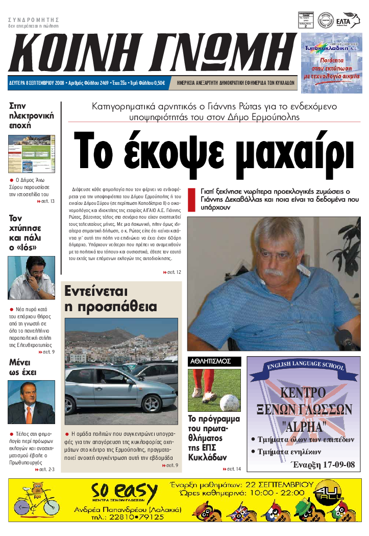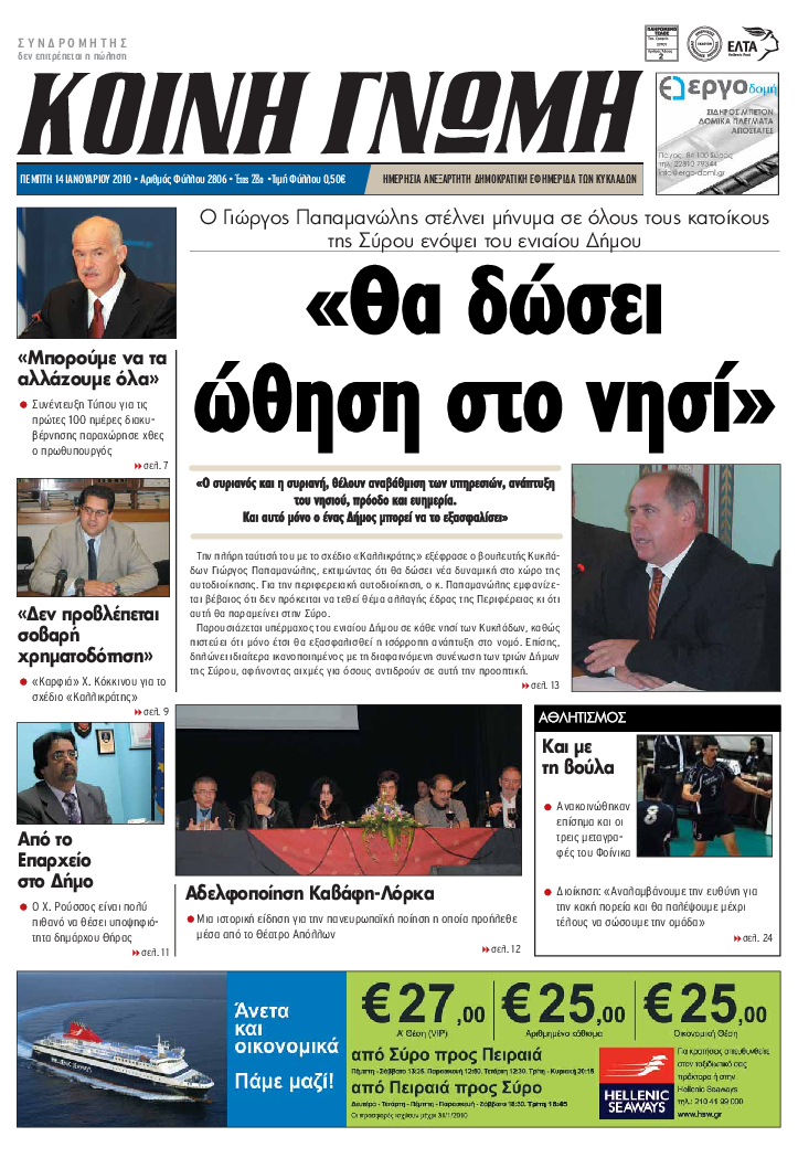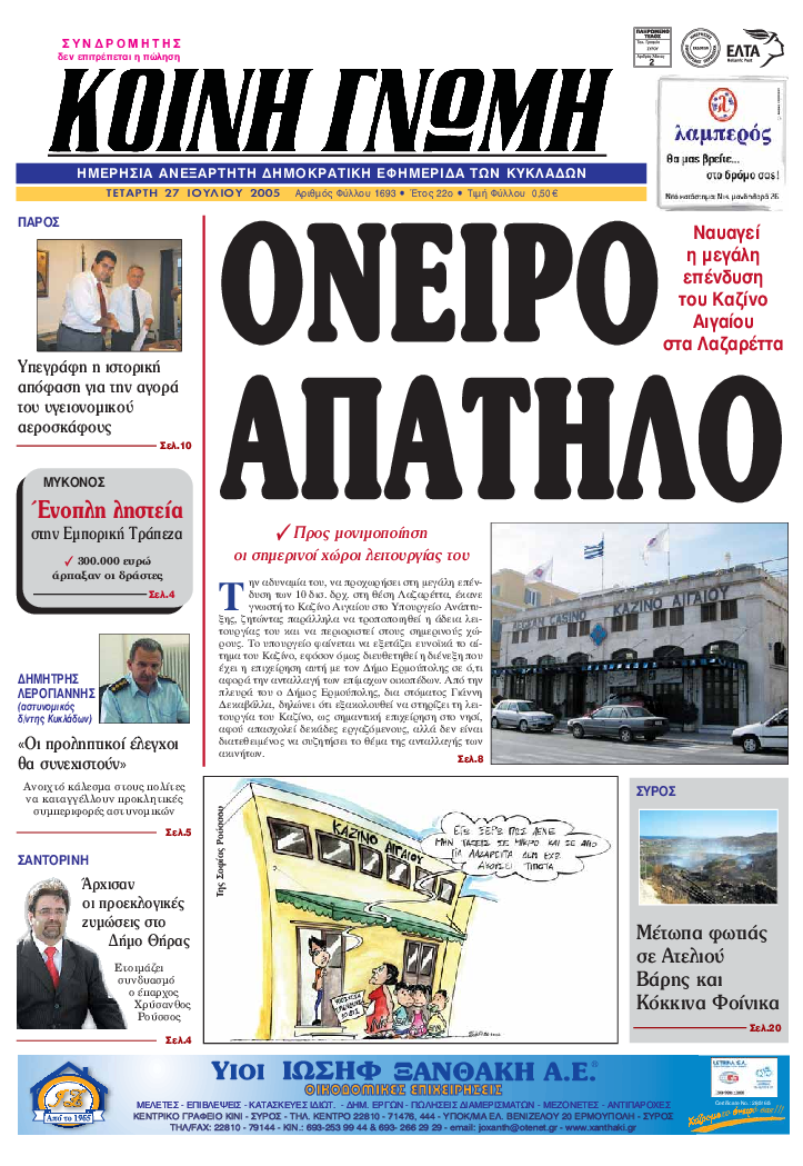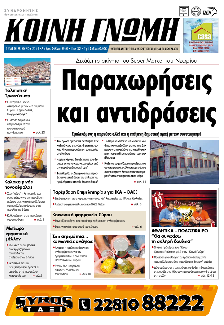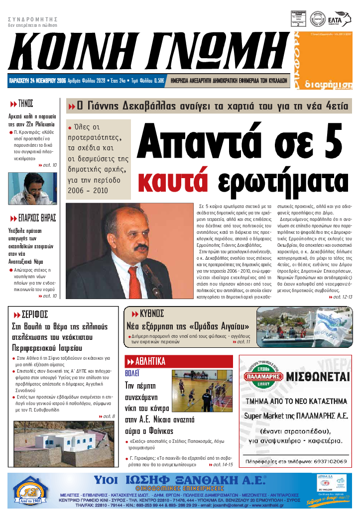 ΚΟΙΝΗ ΓΝΩΜΗ ΚΟΙΝΗ ΓΝΩΜΗ Ημερησια Εφημεριδα των Κυκλαδων