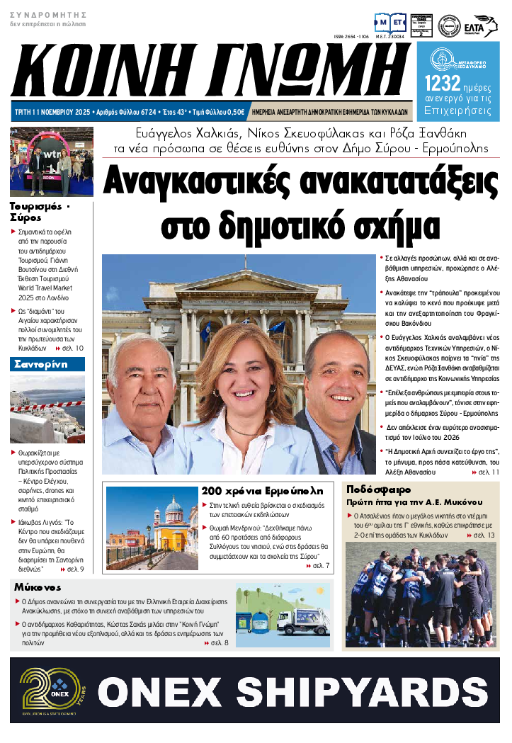 ΚΟΙΝΗ ΓΝΩΜΗ ΚΟΙΝΗ ΓΝΩΜΗ Ημερησια Εφημεριδα των Κυκλαδων
