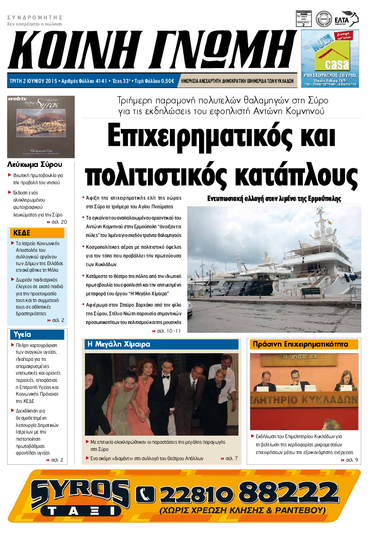 ΚΟΙΝΗ ΓΝΩΜΗ ΚΟΙΝΗ ΓΝΩΜΗ Ημερησια Εφημεριδα των Κυκλαδων