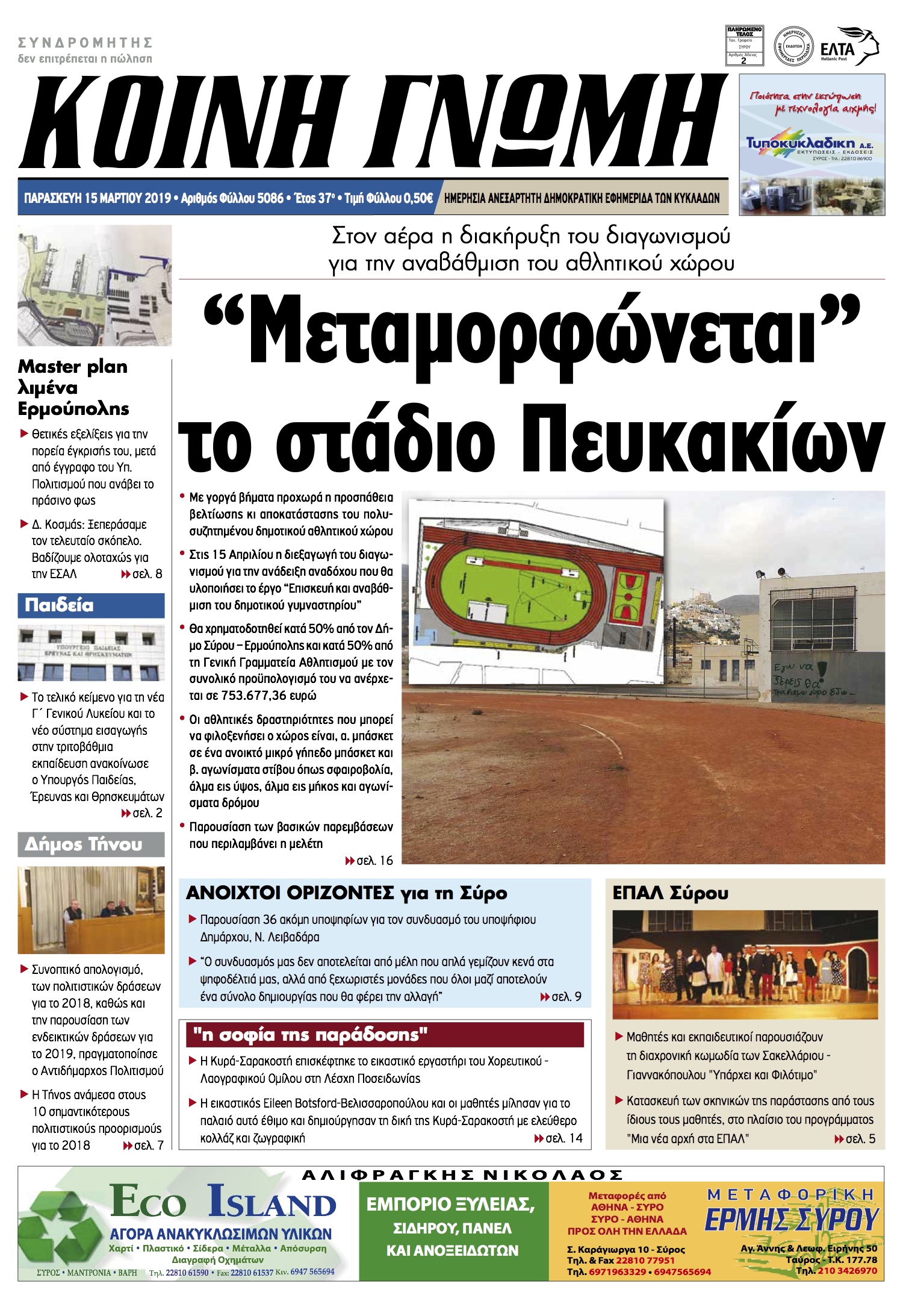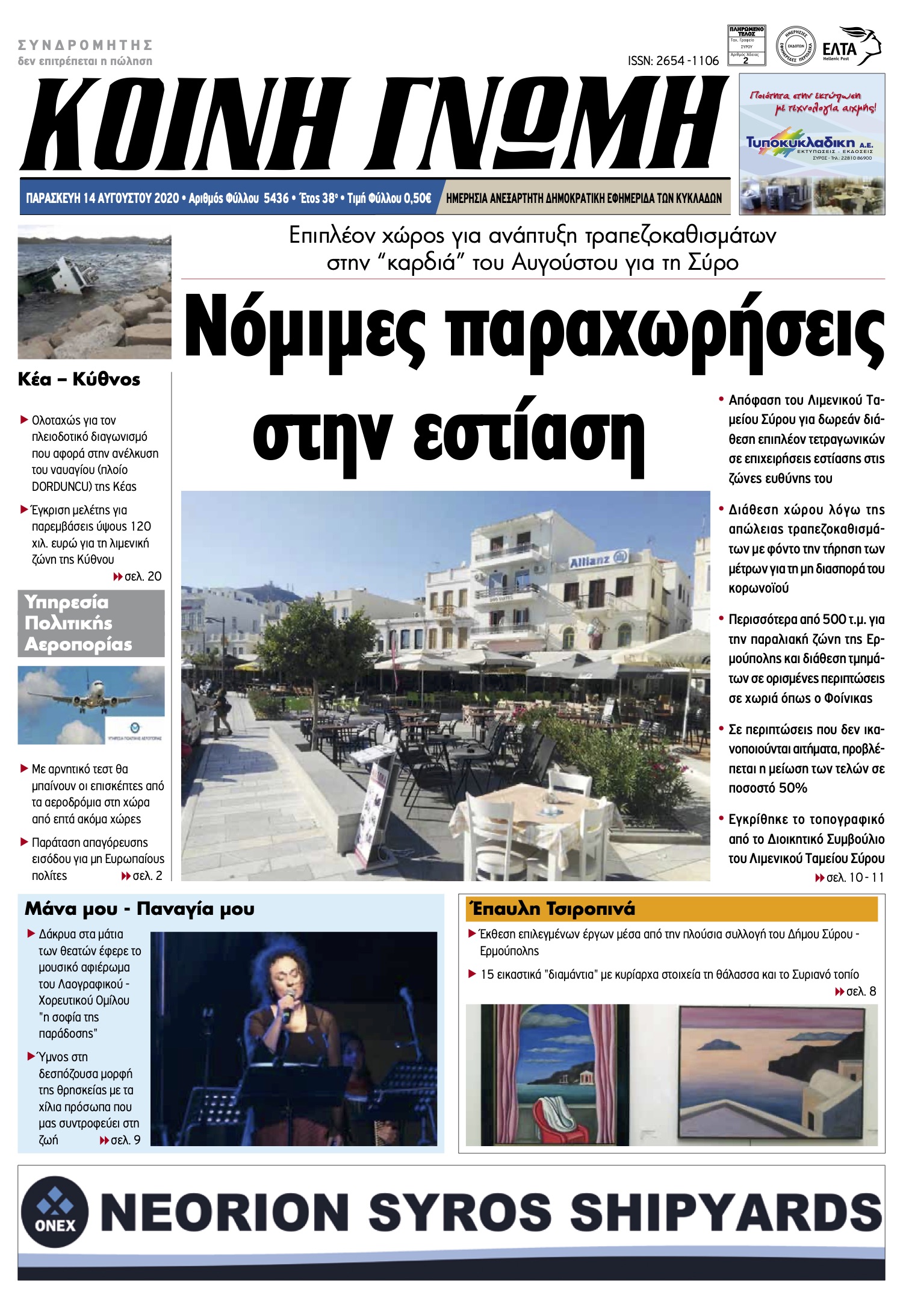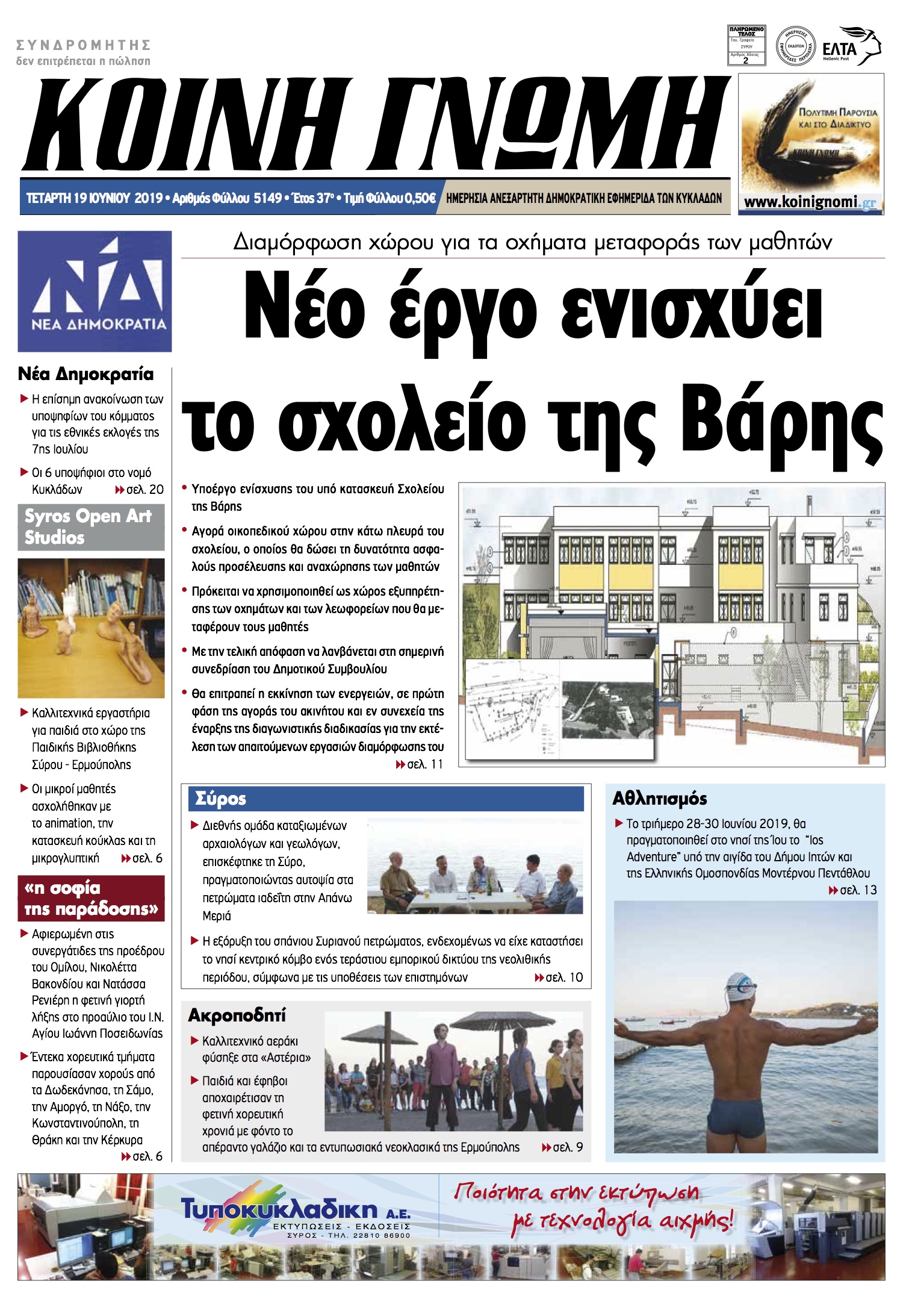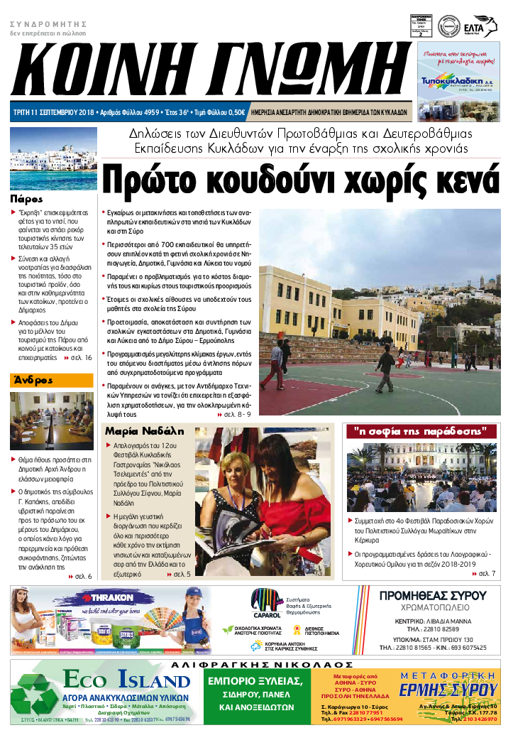 ΚΟΙΝΗ ΓΝΩΜΗ ΚΟΙΝΗ ΓΝΩΜΗ Ημερησια Εφημεριδα των Κυκλαδων