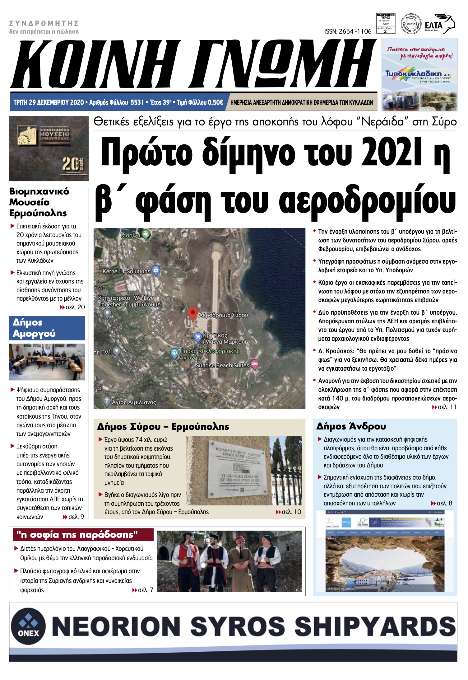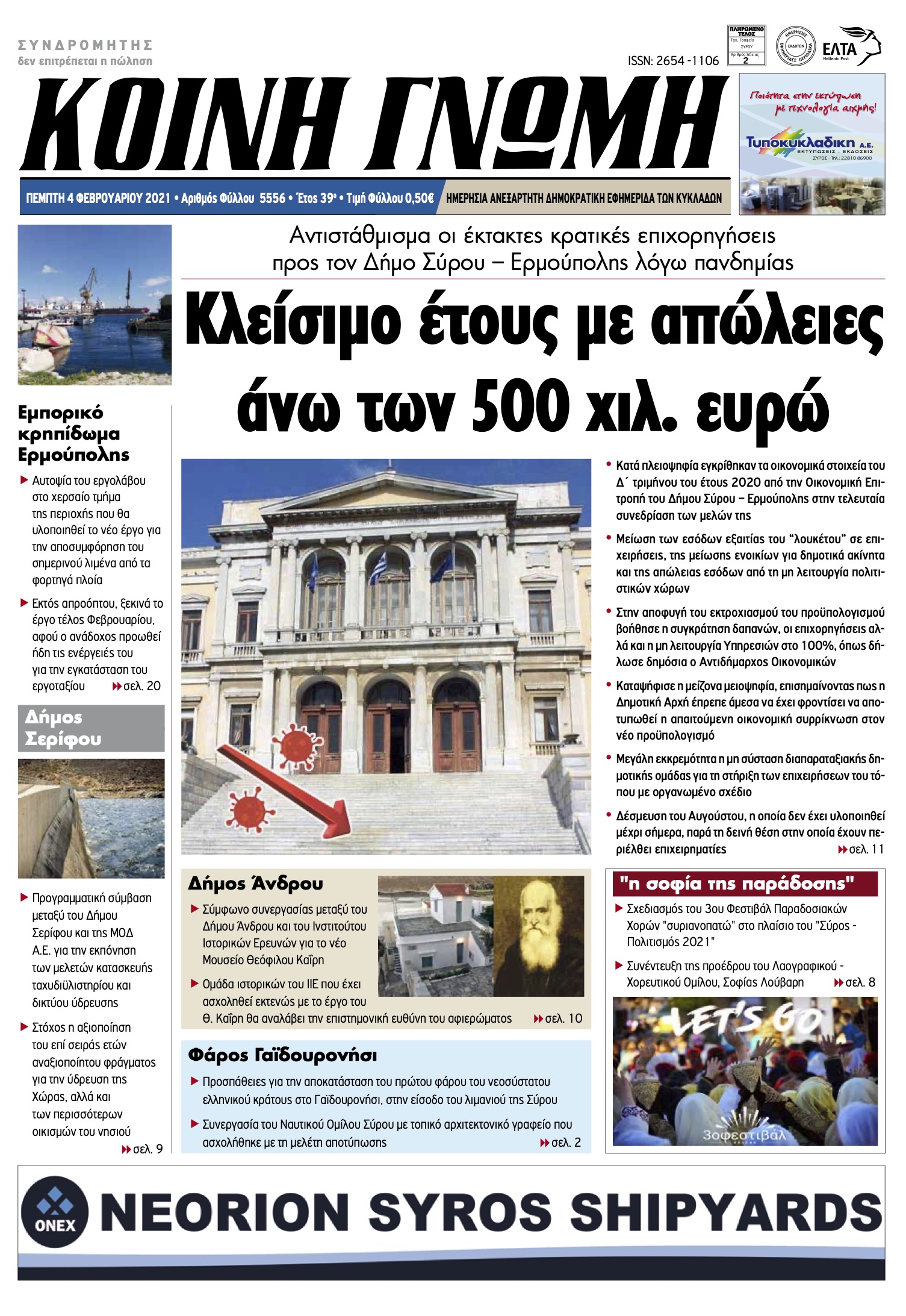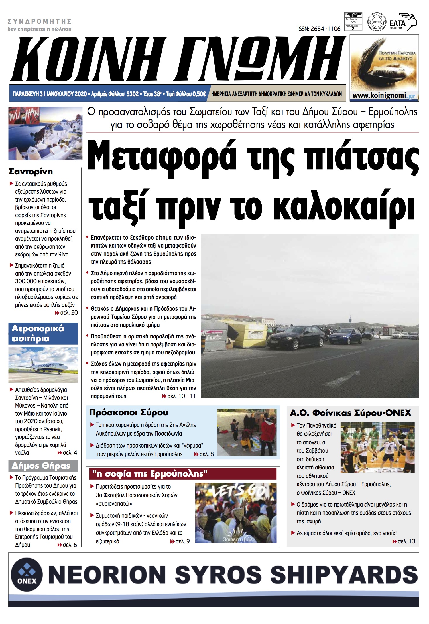 ΚΟΙΝΗ ΓΝΩΜΗ ΚΟΙΝΗ ΓΝΩΜΗ Ημερησια Εφημεριδα των Κυκλαδων