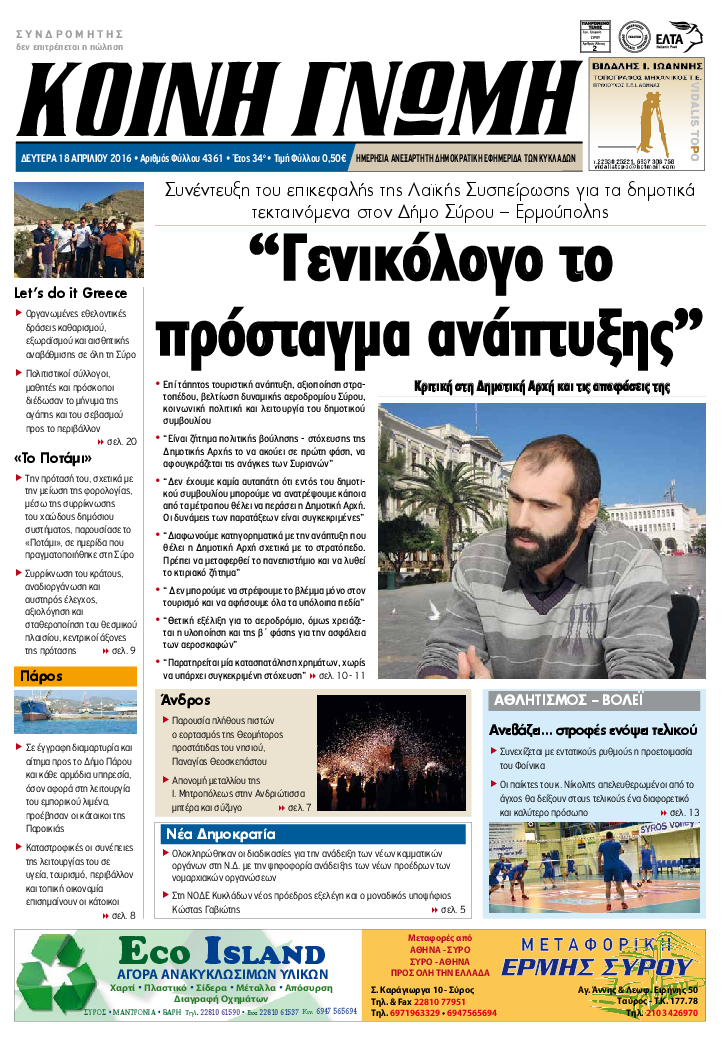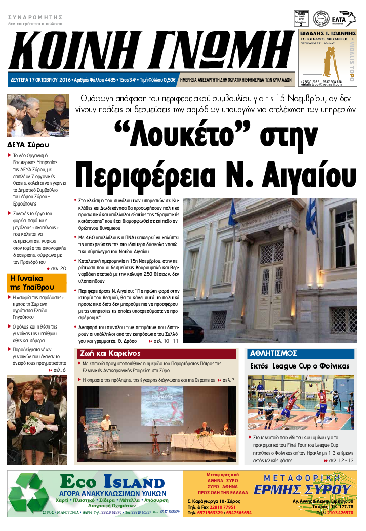 ΚΟΙΝΗ ΓΝΩΜΗ ΚΟΙΝΗ ΓΝΩΜΗ Ημερησια Εφημεριδα των Κυκλαδων