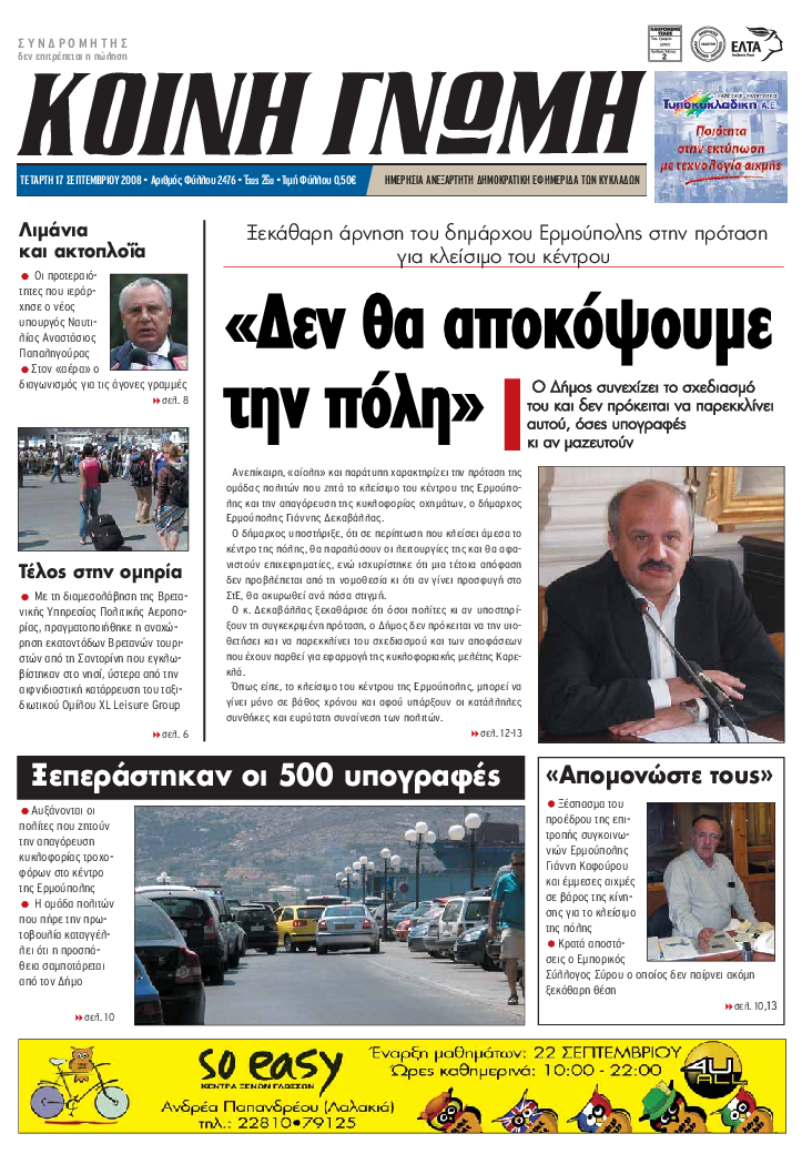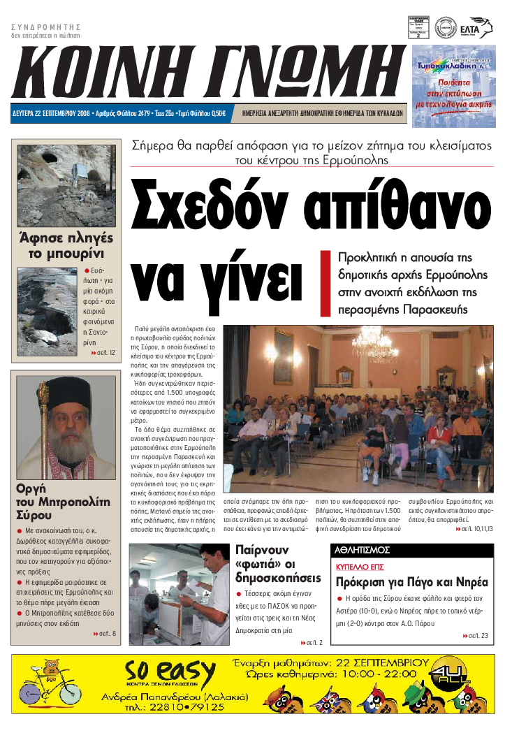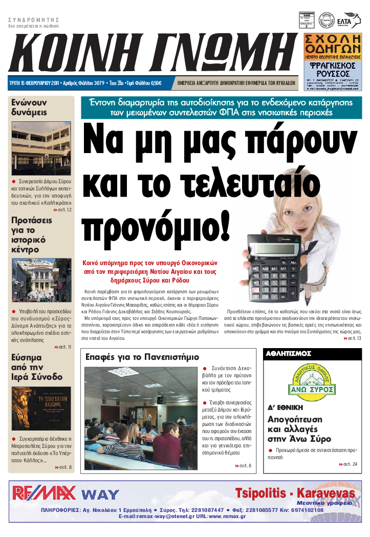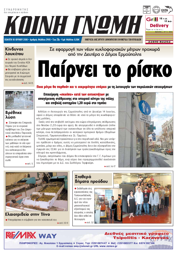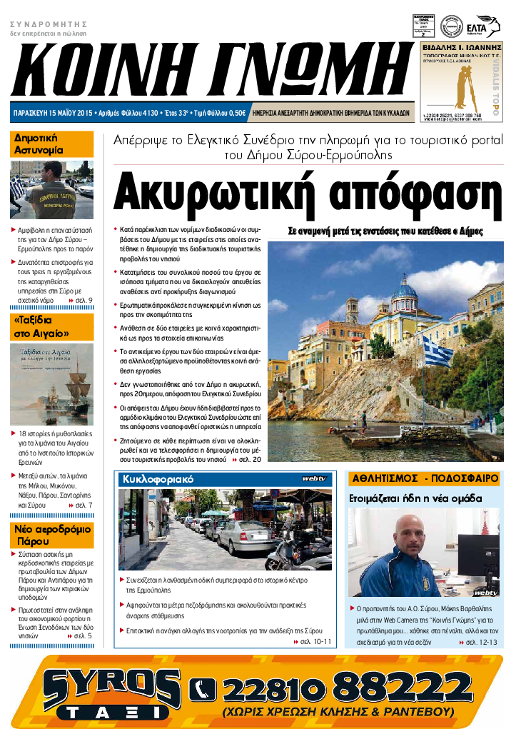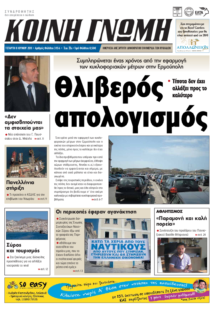 ΚΟΙΝΗ ΓΝΩΜΗ ΚΟΙΝΗ ΓΝΩΜΗ Ημερησια Εφημεριδα των Κυκλαδων