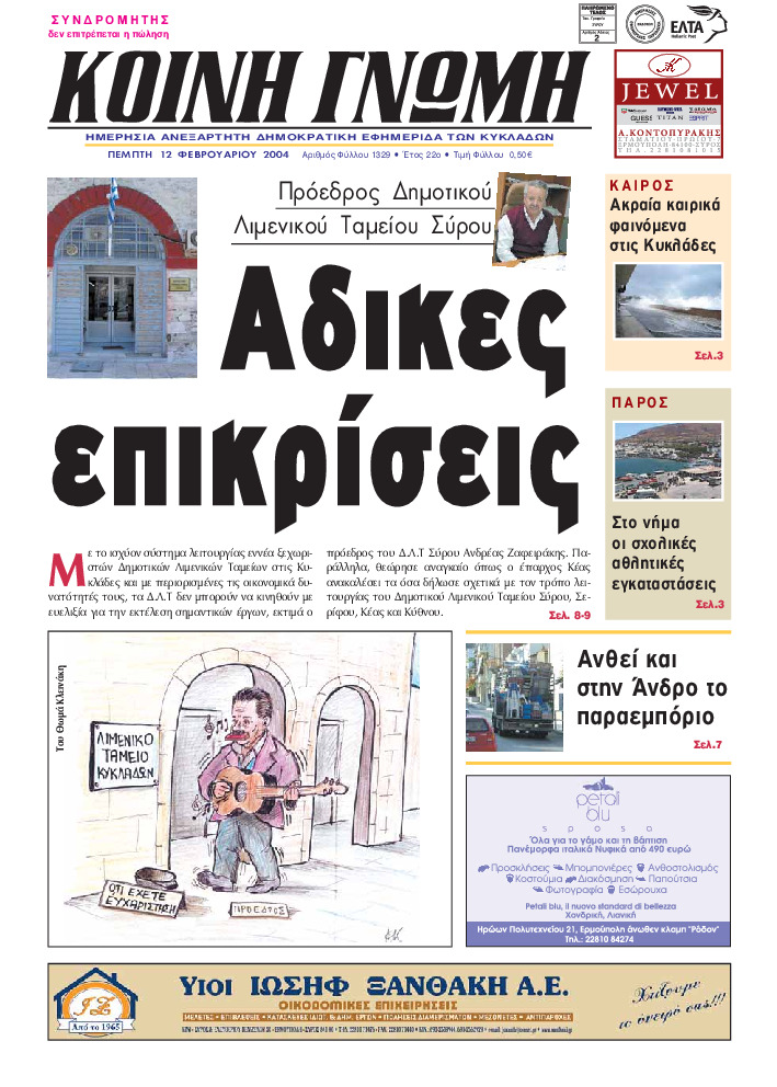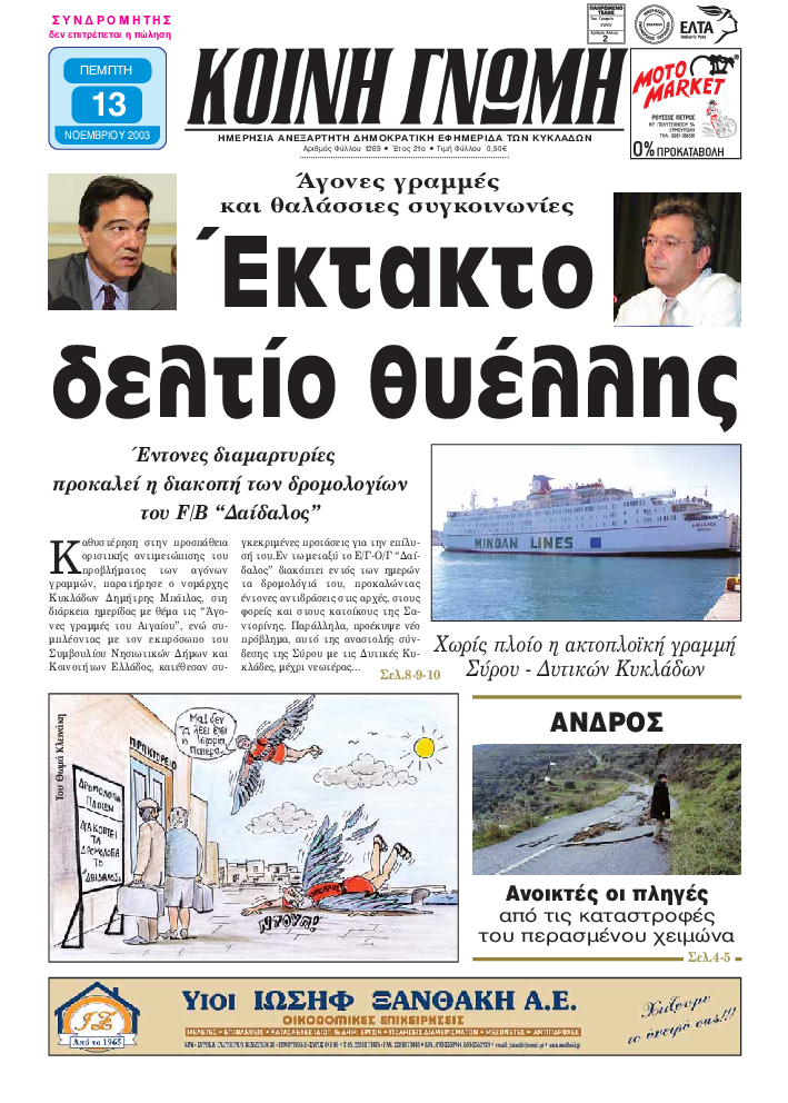ΚΟΙΝΗ ΓΝΩΜΗ ΚΟΙΝΗ ΓΝΩΜΗ Ημερησια Εφημεριδα των Κυκλαδων