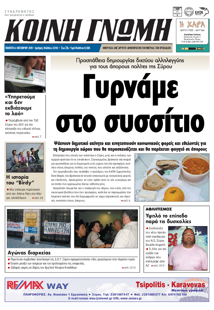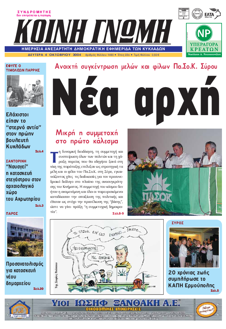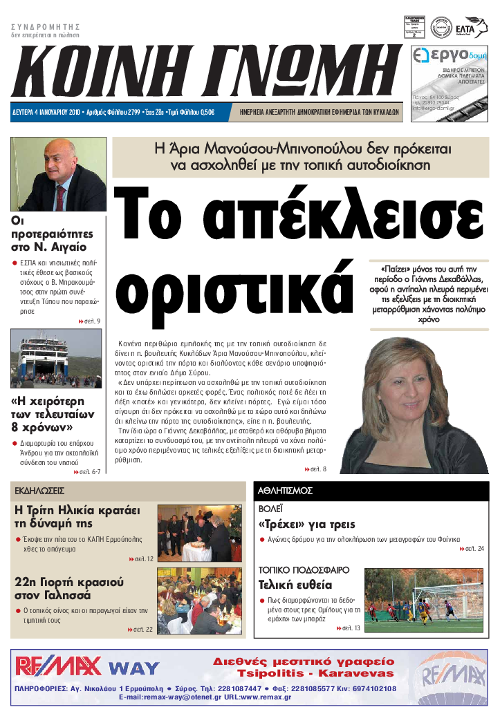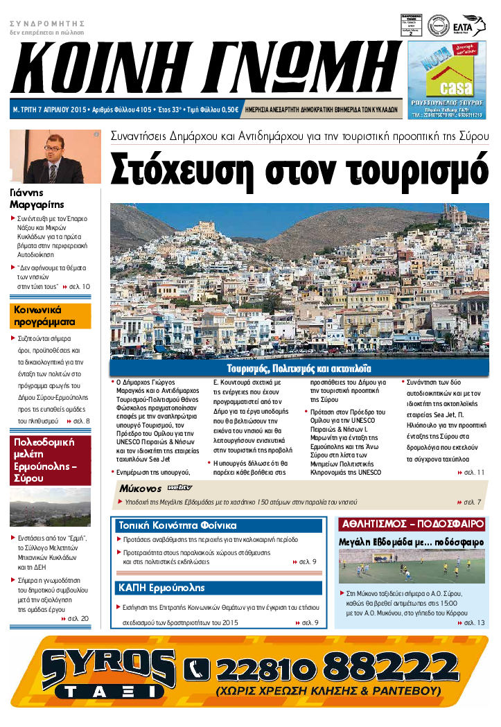 ΚΟΙΝΗ ΓΝΩΜΗ ΚΟΙΝΗ ΓΝΩΜΗ Ημερησια Εφημεριδα των Κυκλαδων