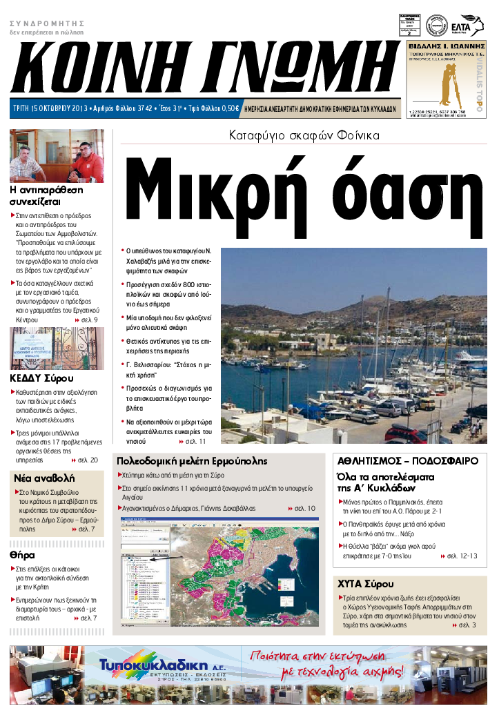 ΚΟΙΝΗ ΓΝΩΜΗ ΚΟΙΝΗ ΓΝΩΜΗ Ημερησια Εφημεριδα των Κυκλαδων