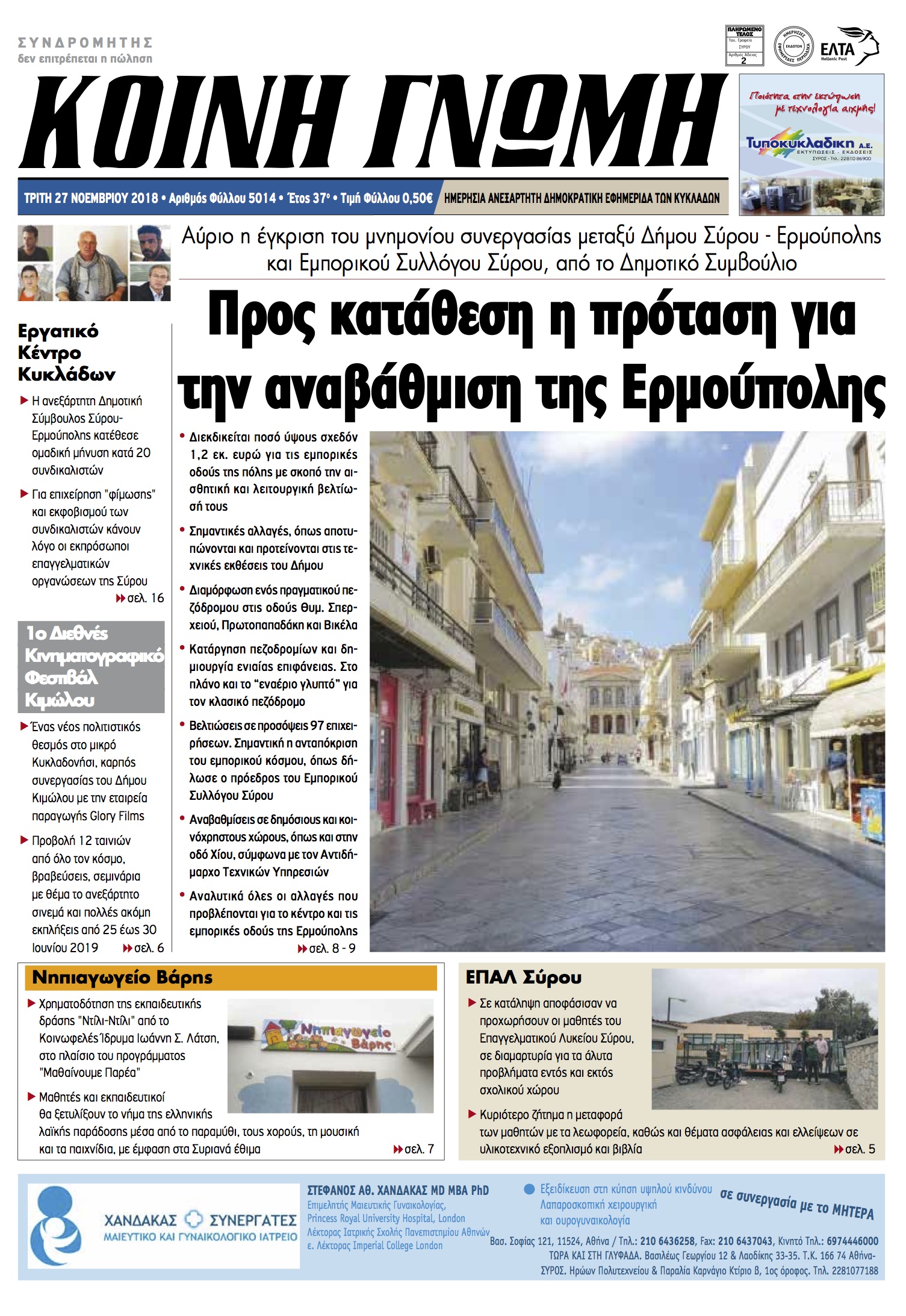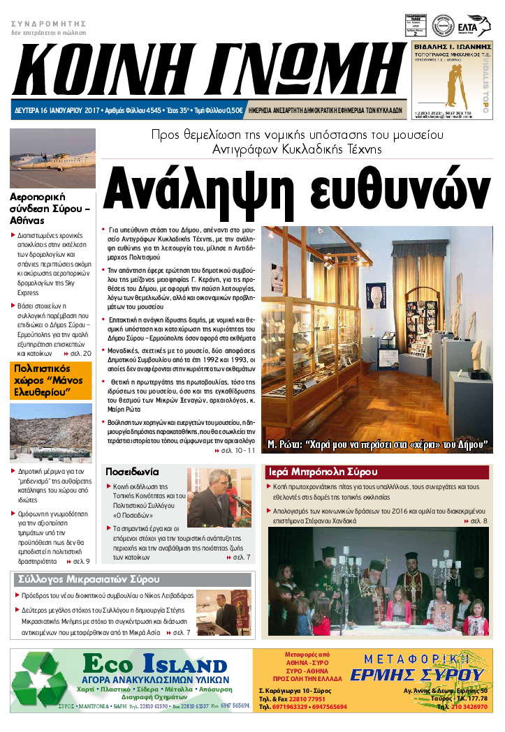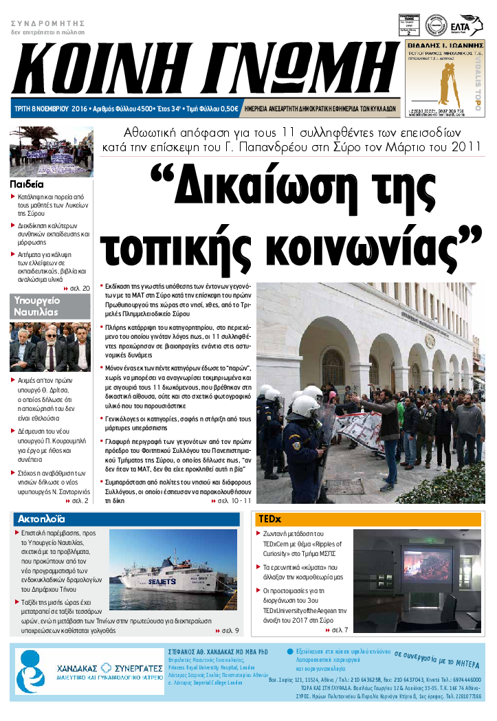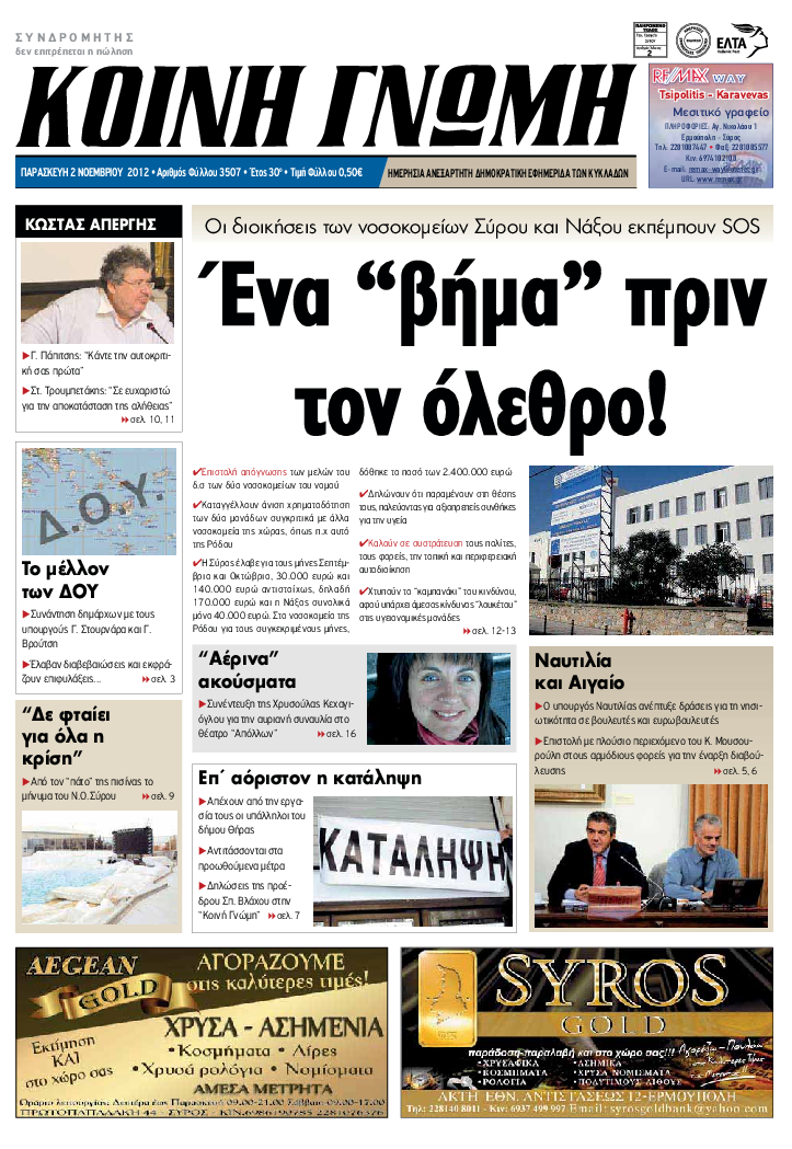 ΚΟΙΝΗ ΓΝΩΜΗ ΚΟΙΝΗ ΓΝΩΜΗ Ημερησια Εφημεριδα των Κυκλαδων