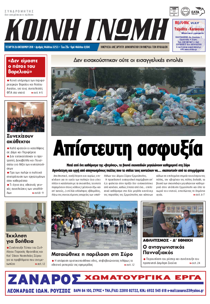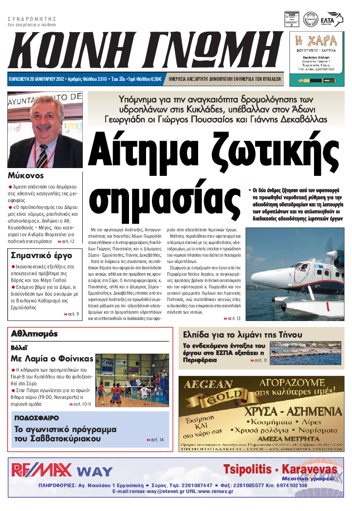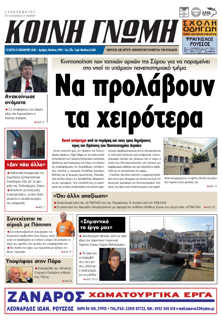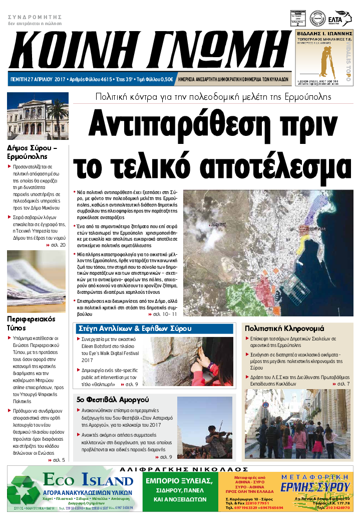 ΚΟΙΝΗ ΓΝΩΜΗ ΚΟΙΝΗ ΓΝΩΜΗ Ημερησια Εφημεριδα των Κυκλαδων
