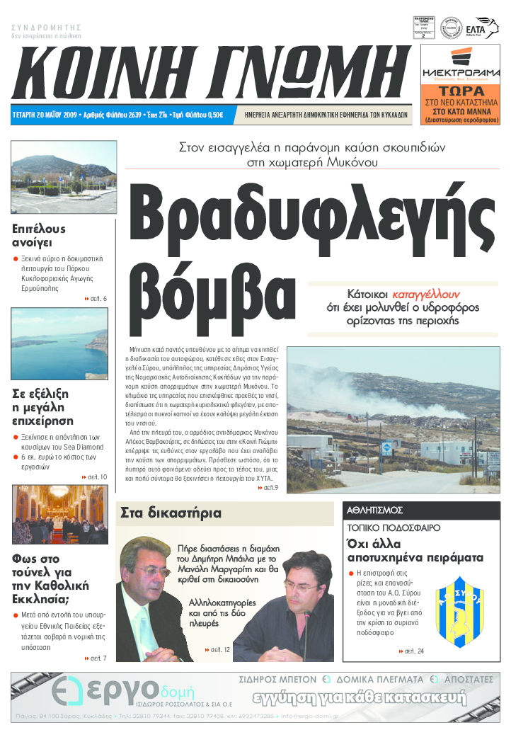 ΚΟΙΝΗ ΓΝΩΜΗ ΚΟΙΝΗ ΓΝΩΜΗ Ημερησια Εφημεριδα των Κυκλαδων