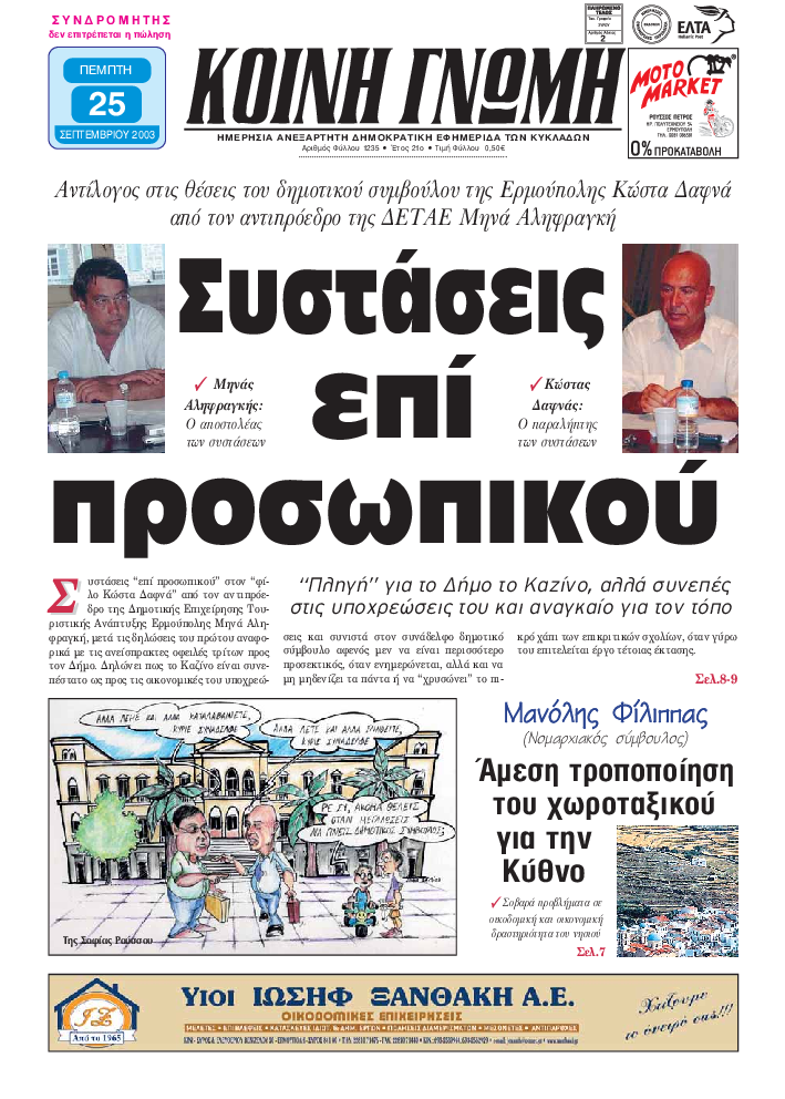 ΚΟΙΝΗ ΓΝΩΜΗ ΚΟΙΝΗ ΓΝΩΜΗ Ημερησια Εφημεριδα των Κυκλαδων
