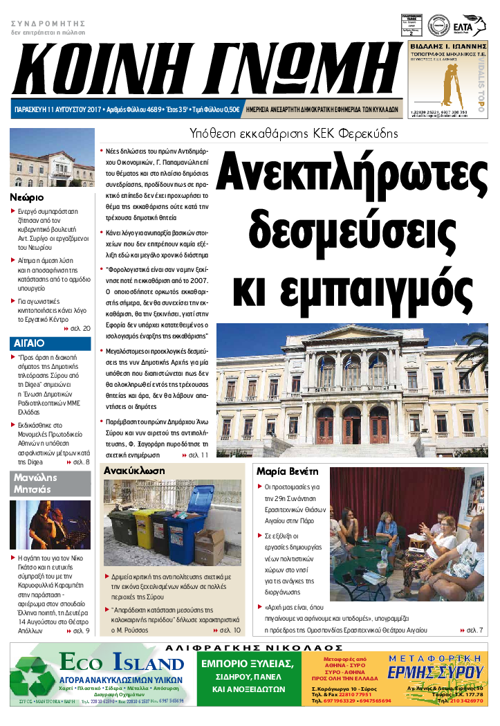 ΚΟΙΝΗ ΓΝΩΜΗ ΚΟΙΝΗ ΓΝΩΜΗ Ημερησια Εφημεριδα των Κυκλαδων