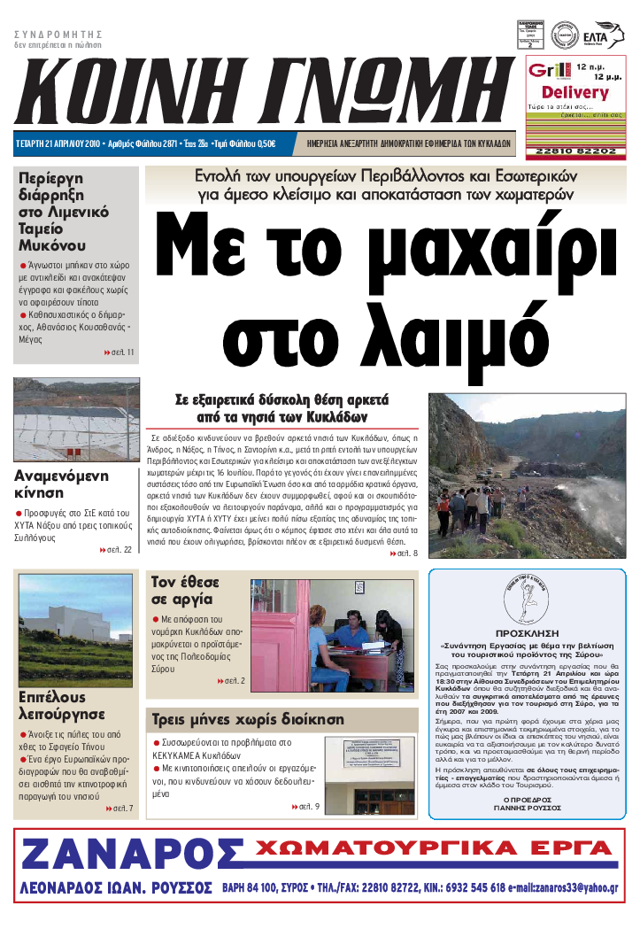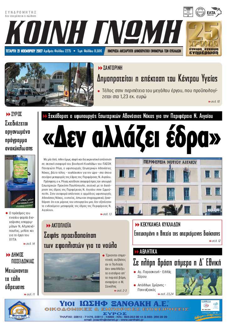 ΚΟΙΝΗ ΓΝΩΜΗ ΚΟΙΝΗ ΓΝΩΜΗ Ημερησια Εφημεριδα των Κυκλαδων