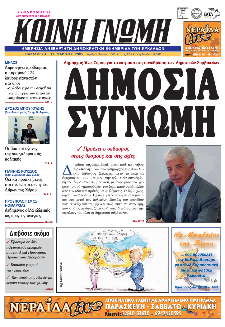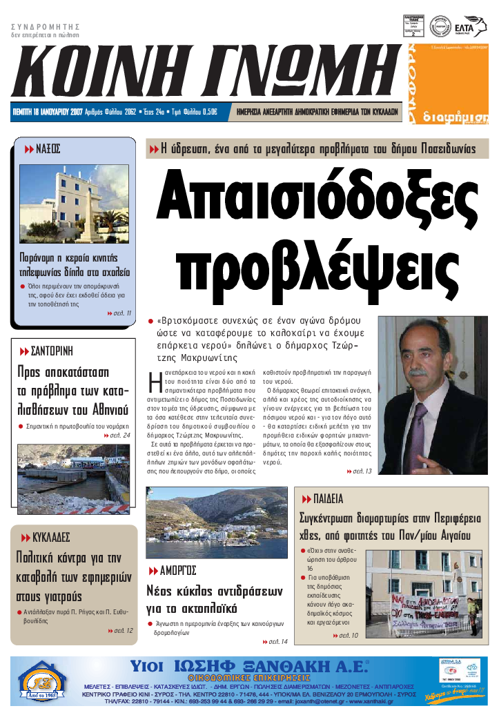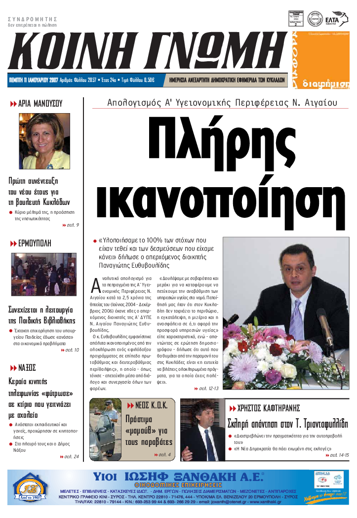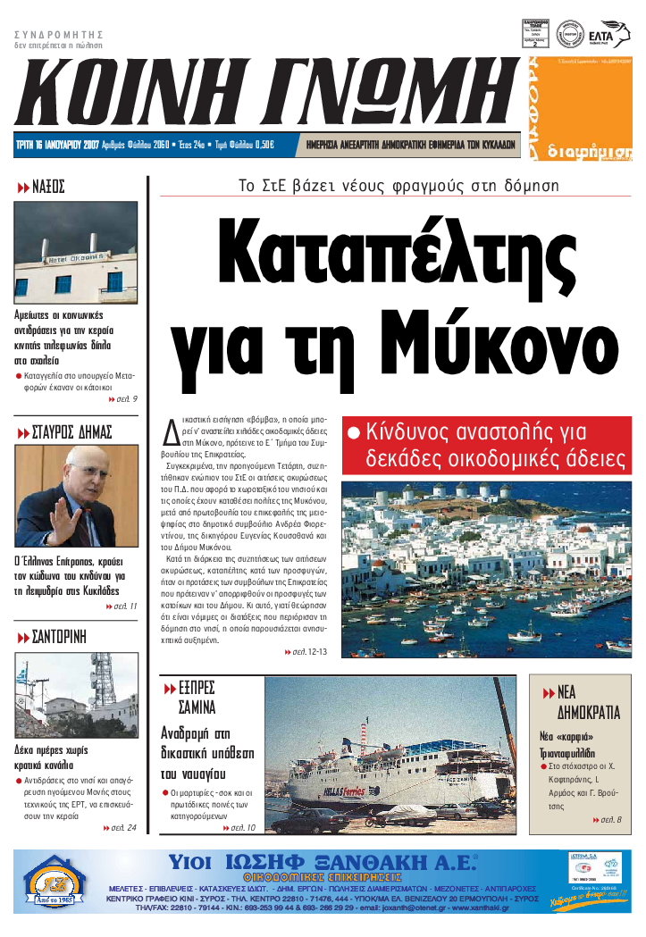ΚΟΙΝΗ ΓΝΩΜΗ ΚΟΙΝΗ ΓΝΩΜΗ Ημερησια Εφημεριδα των Κυκλαδων