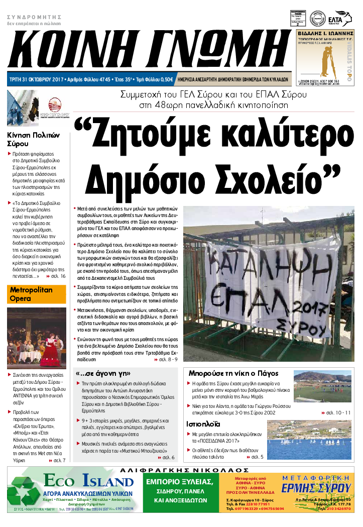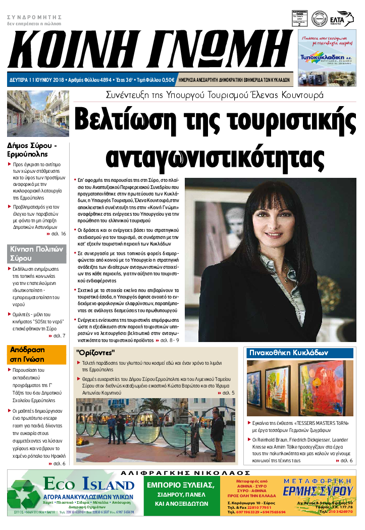 ΚΟΙΝΗ ΓΝΩΜΗ ΚΟΙΝΗ ΓΝΩΜΗ Ημερησια Εφημεριδα των Κυκλαδων