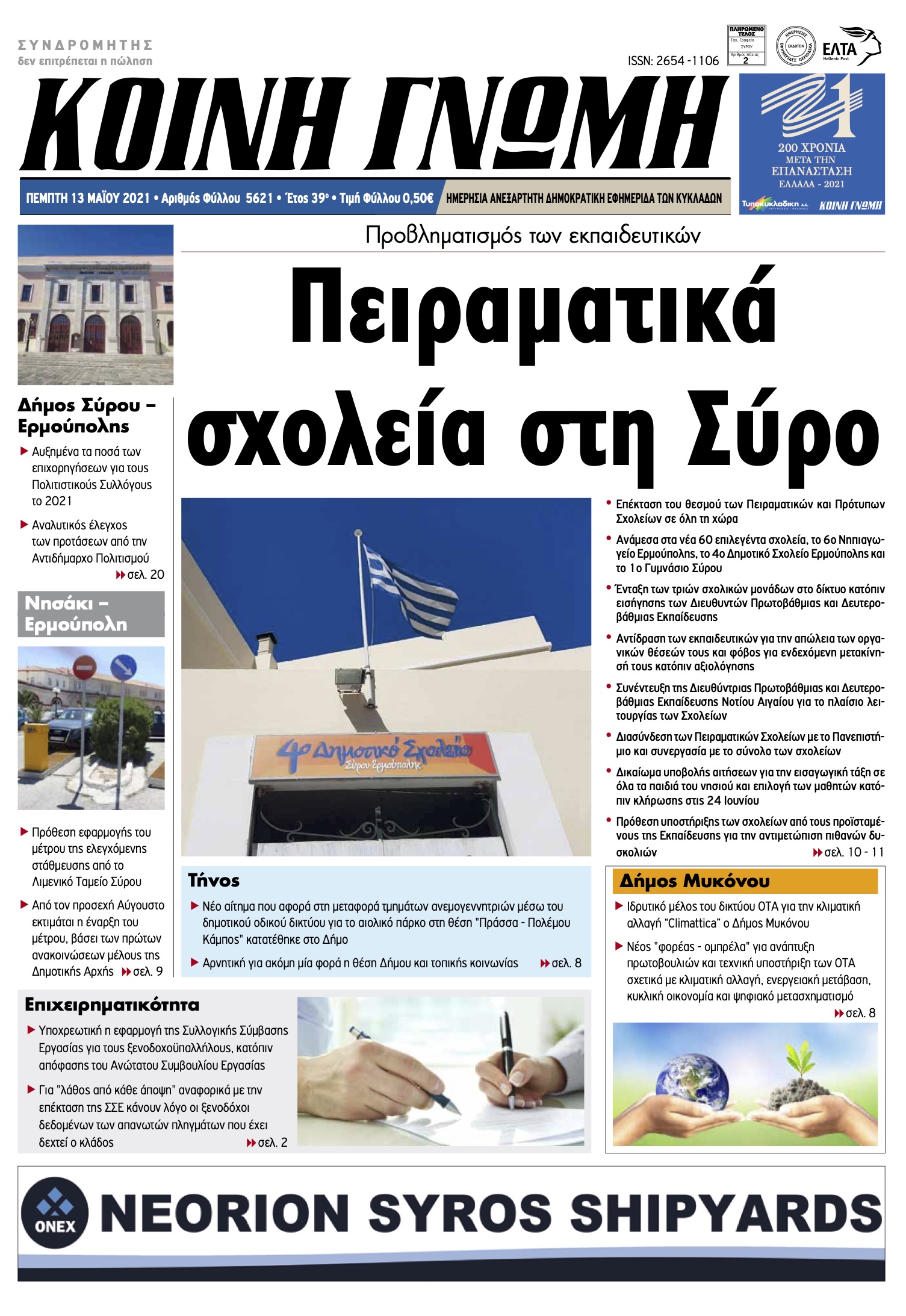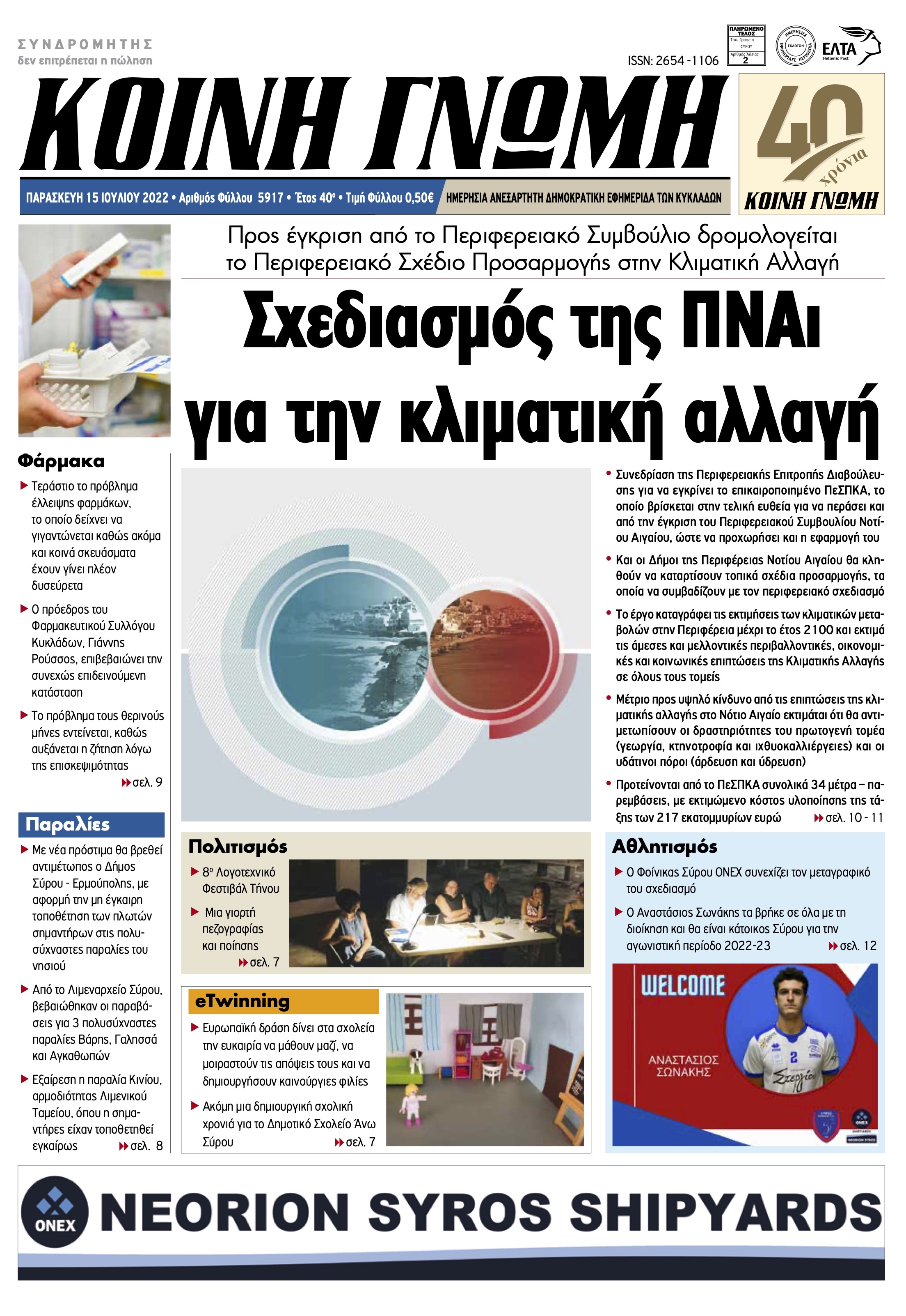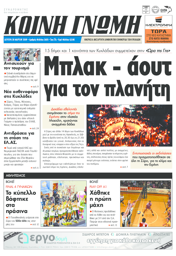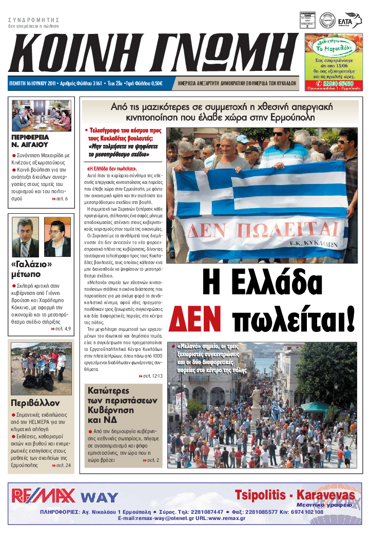 ΚΟΙΝΗ ΓΝΩΜΗ ΚΟΙΝΗ ΓΝΩΜΗ Ημερησια Εφημεριδα των Κυκλαδων