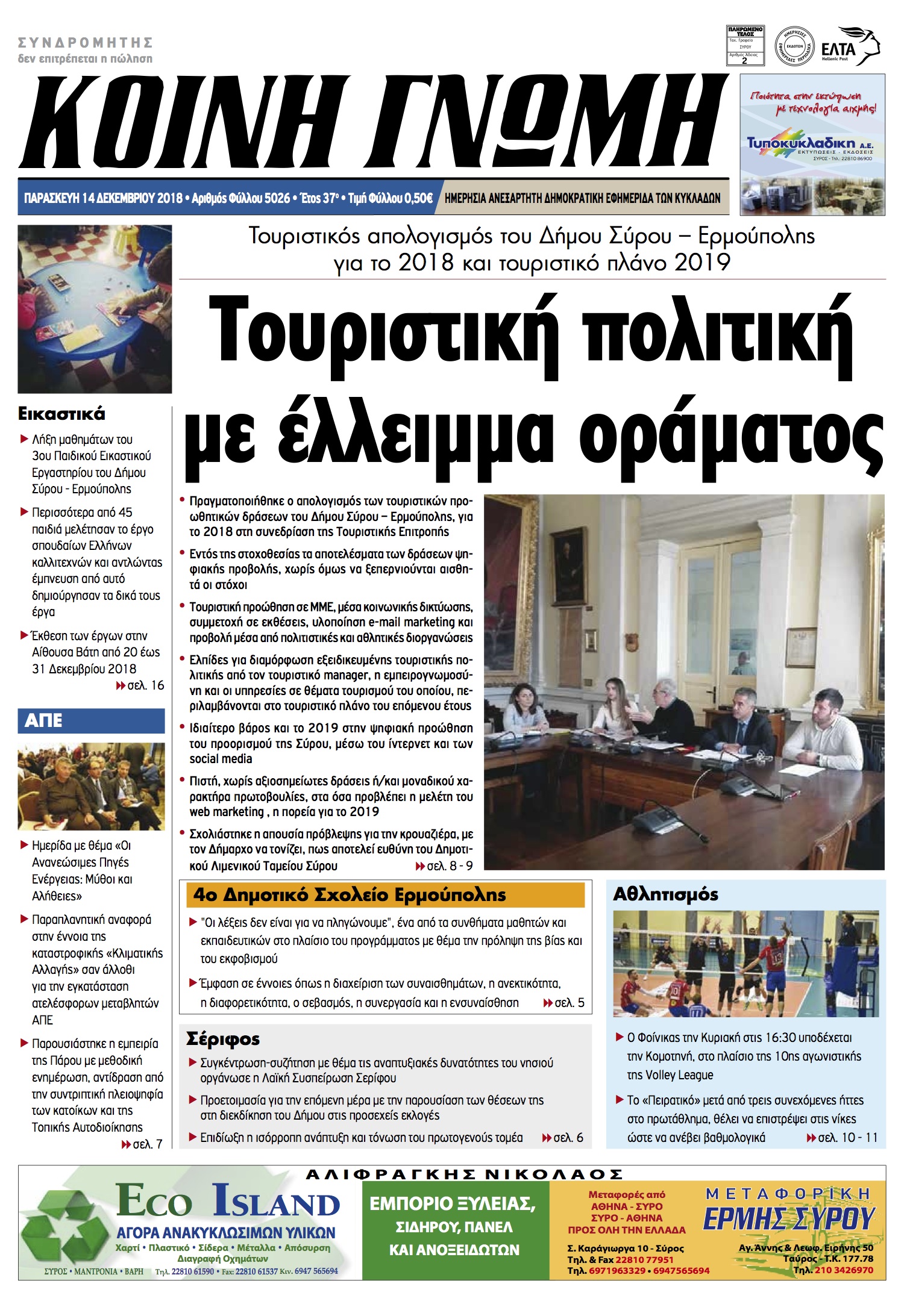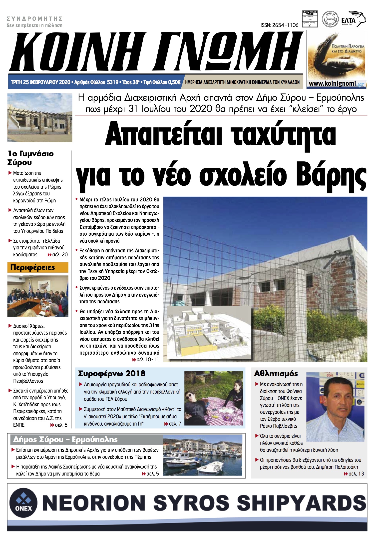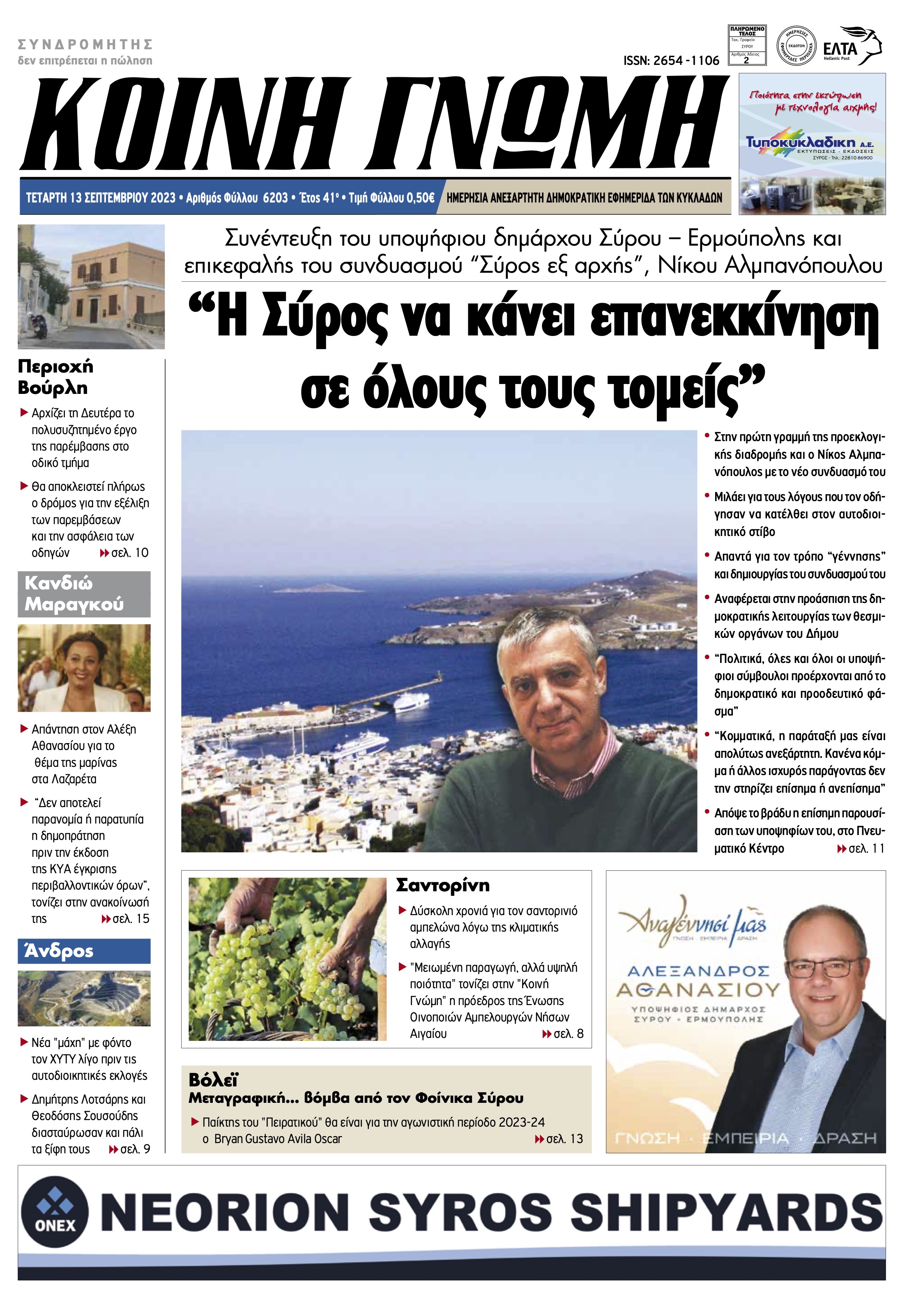 ΚΟΙΝΗ ΓΝΩΜΗ ΚΟΙΝΗ ΓΝΩΜΗ Ημερησια Εφημεριδα των Κυκλαδων
